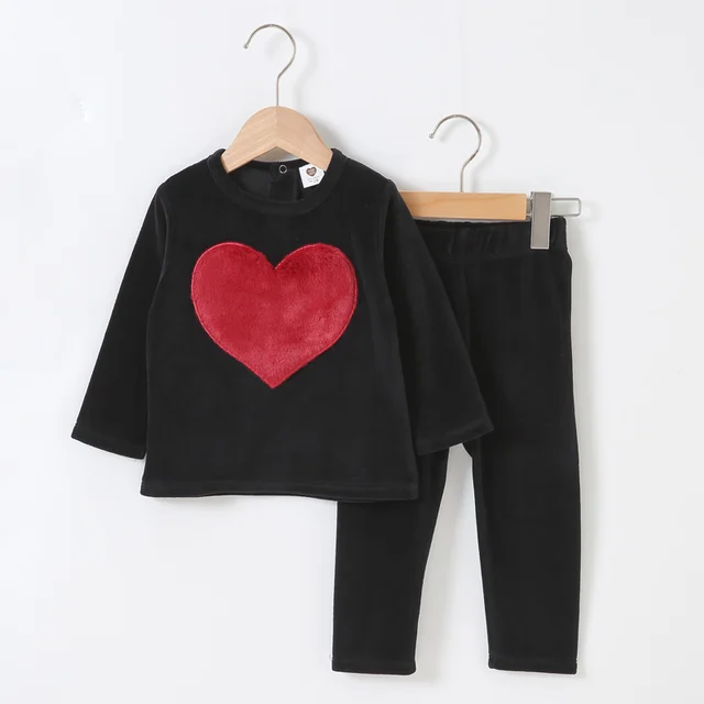 children clothes 2pcs set velour kids clothes baby boy clothes girls clothes round neck long pants heart
