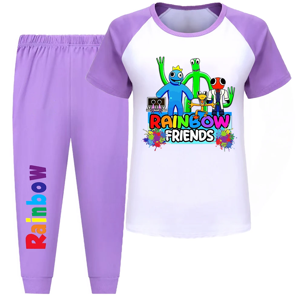 Children Clothing Boys Sleepwear Clothes Kids Rainbow Game Pajamas Sets Baby Girls friend Cartoon Spring