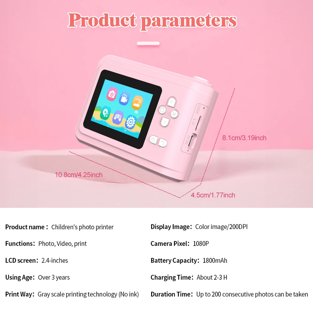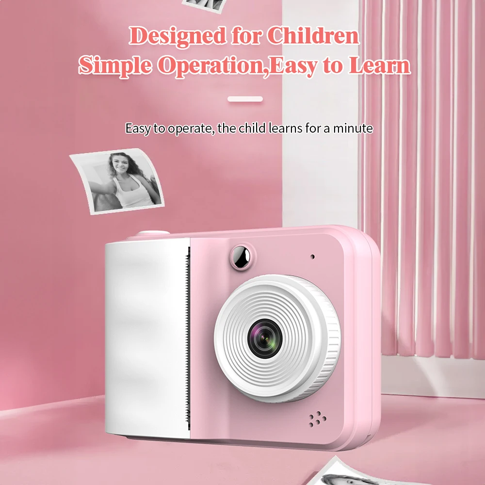 【One Button Instant Print Camera】 This toddler camera adopts thermal printer technology, just press the button then you can get a black-and-white printed picture in seconds.