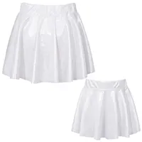 The skirt features with good elastic waistband, shiny colorful sequins decorated bronzing cloth style, pleated mini skirt.