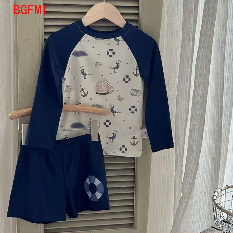 A Two-Piece Casual And Fashionable Boys' Round-Neck Sweatshirt And Sweatpants Set