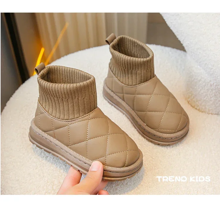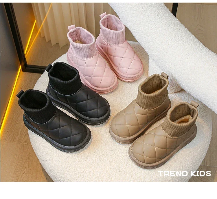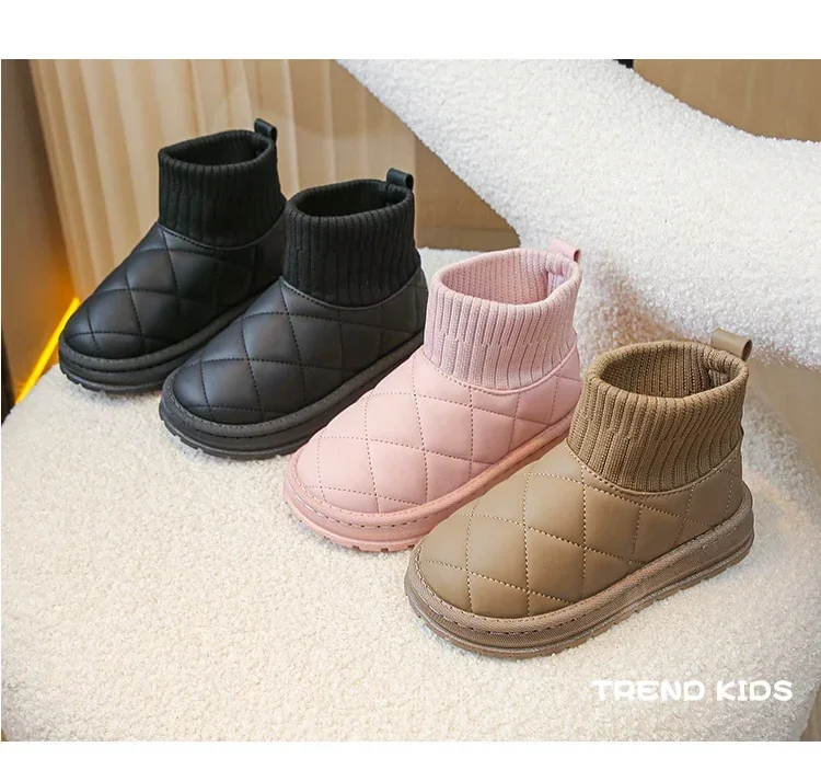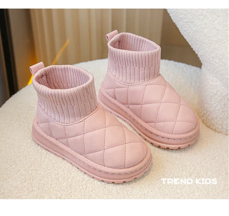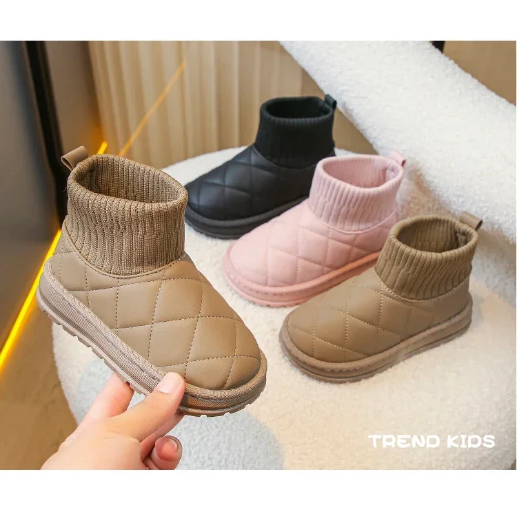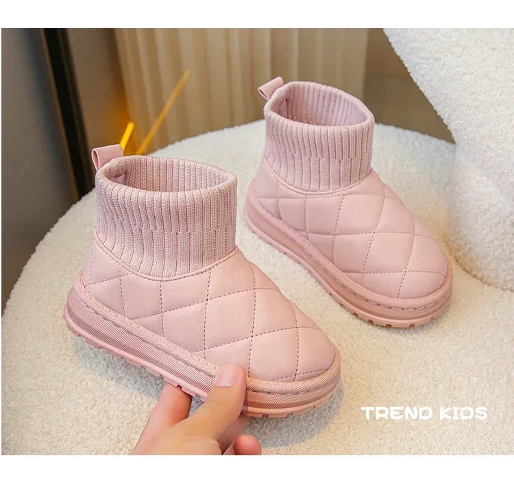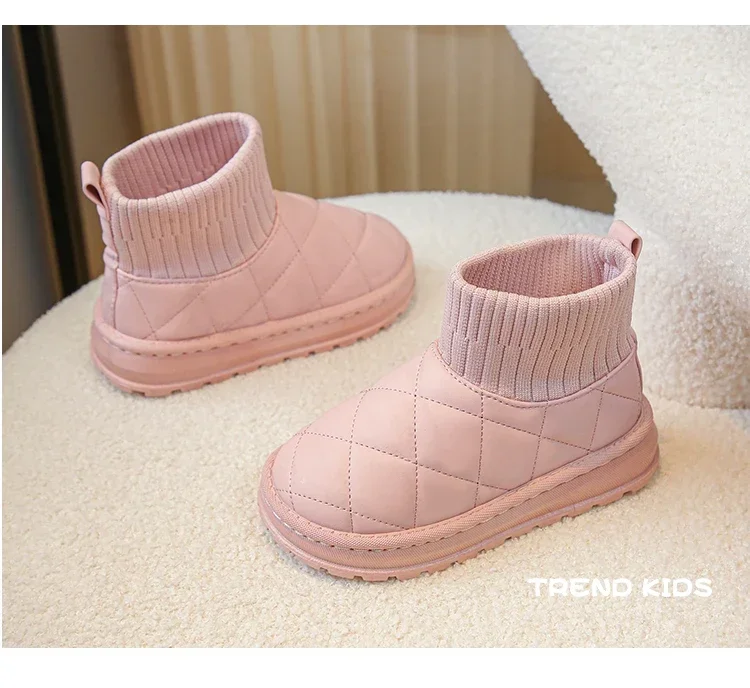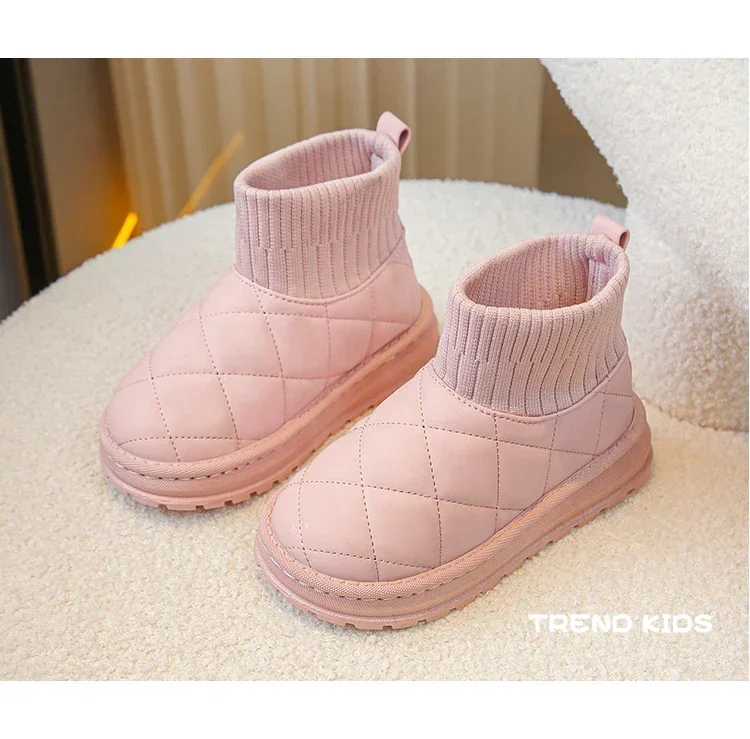 Children’s Boots Sock Style Snow Boots Girls Short Boots Kids Cute Sewing Autumn Winter New Warm