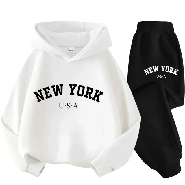 Autumn Winter Kid Cool Print Hoodies+Pant Suit 2pcs Set Boy Pop Sweatshirt Clothes Sportsuits Children Hooded Casual Tracksuit