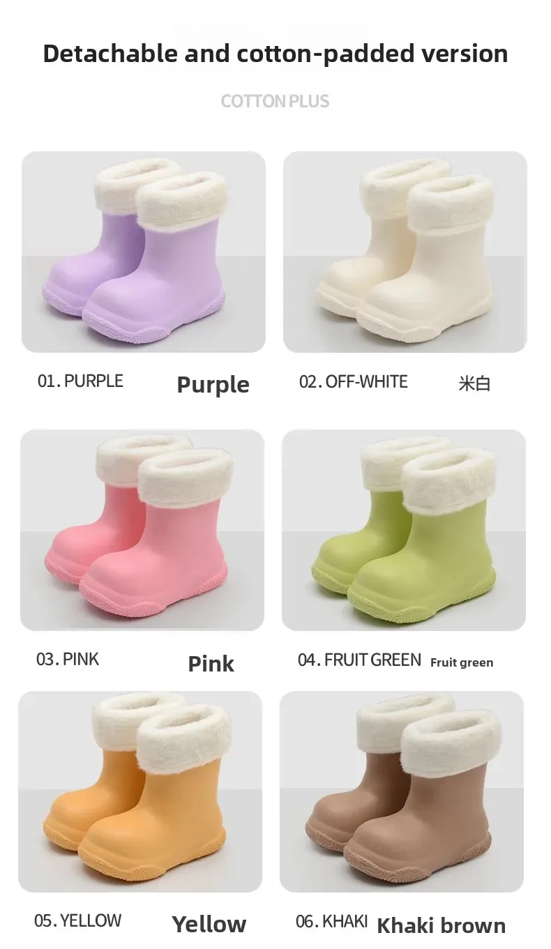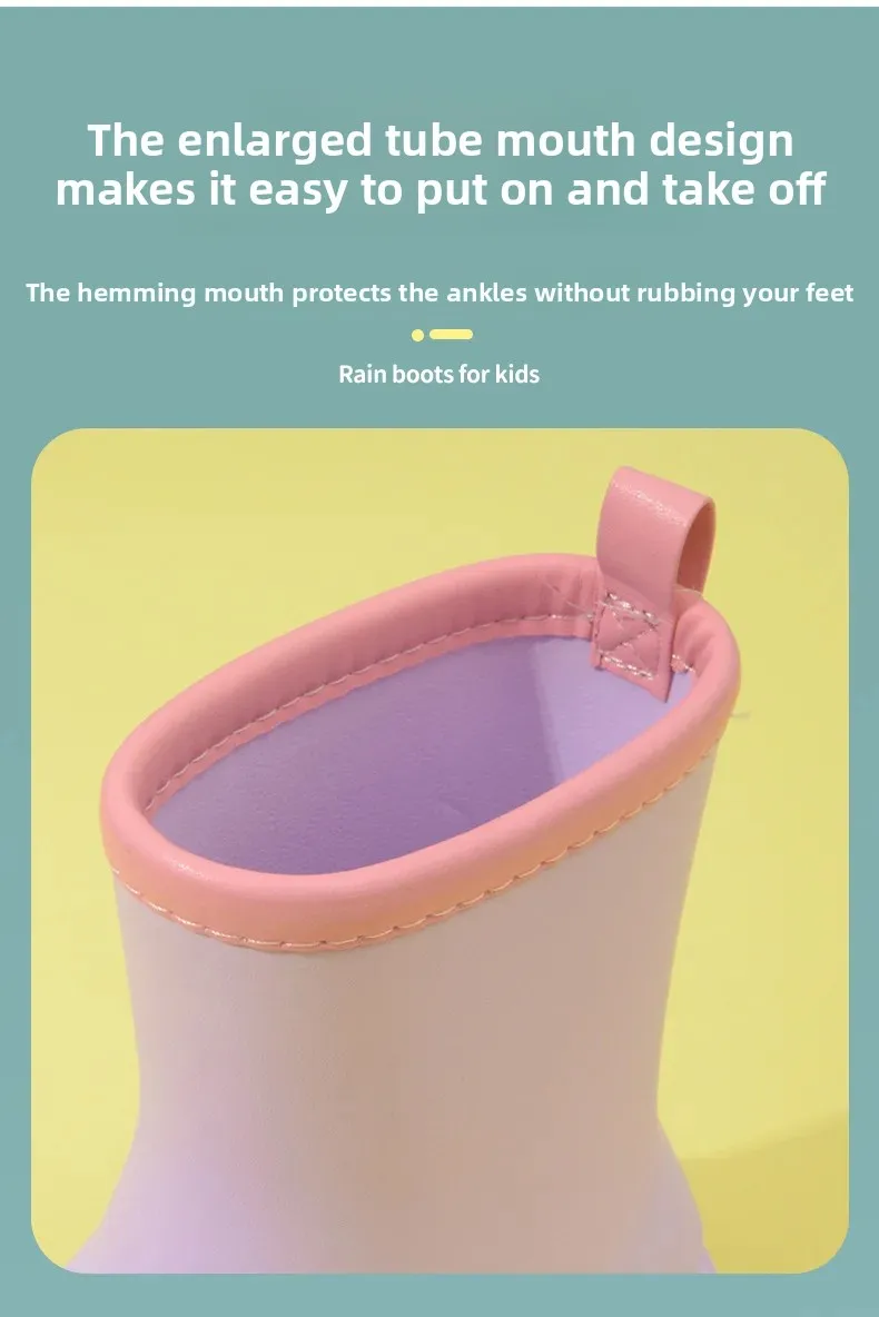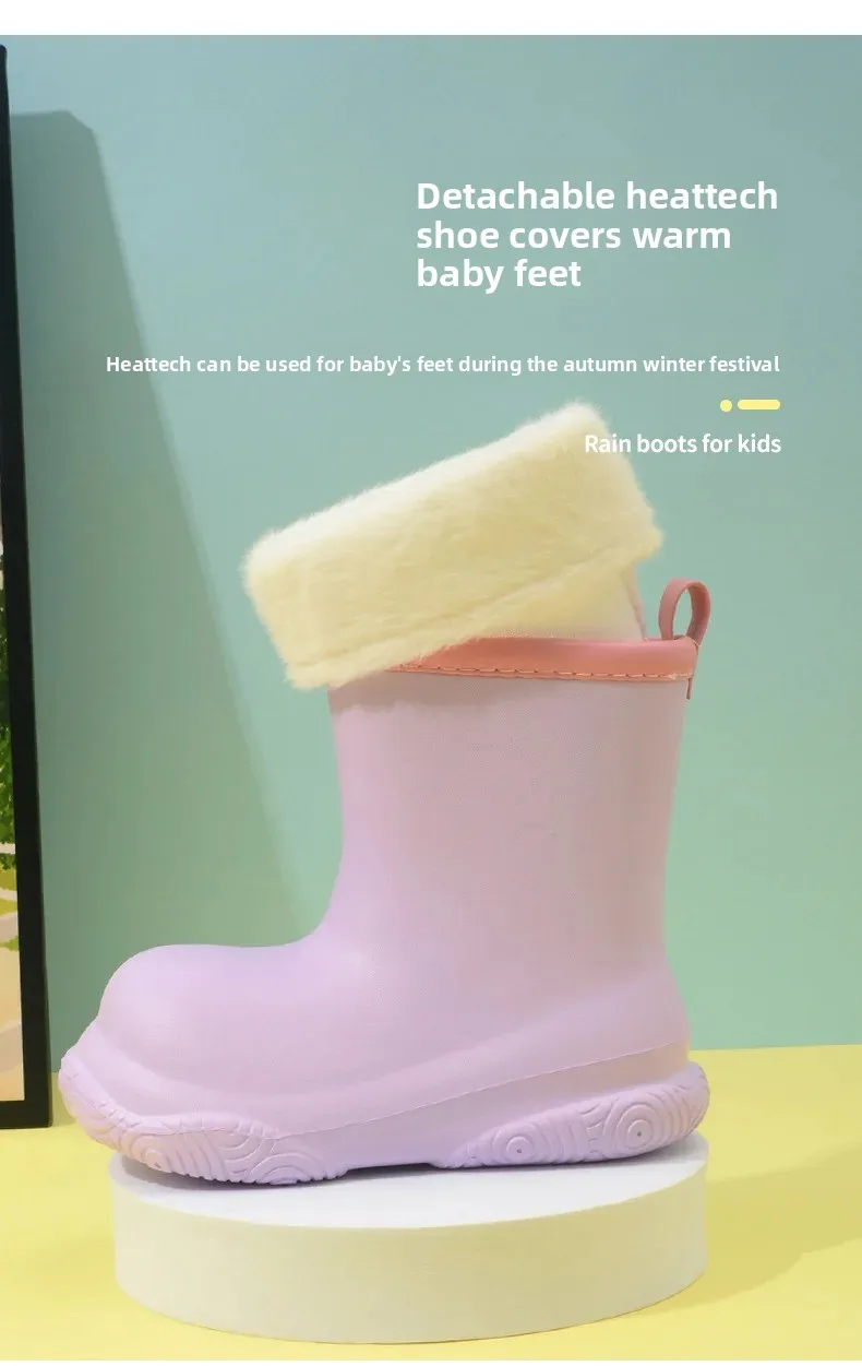 Children's Lightweight Anti-slip Fleece-lined Short Rain Boots Durable Comfortable for Boys And Girls Easy to Wear And Remove