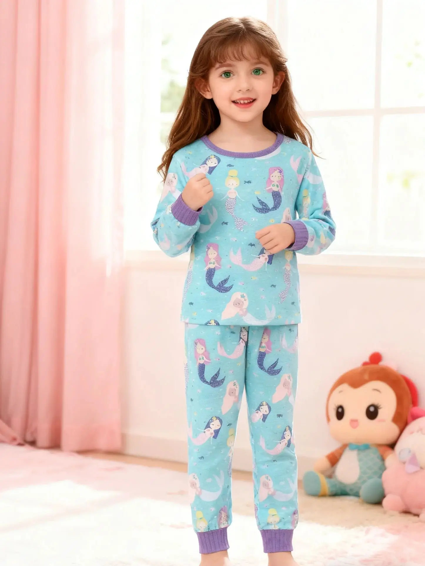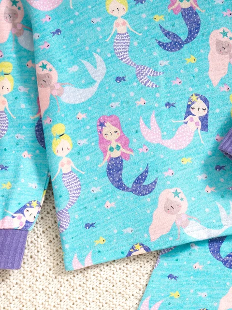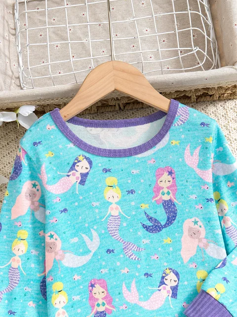 Children’s Mermaid Print Sleepwear Set Casual Daily Style Comfortable Skin-friendly Girls’