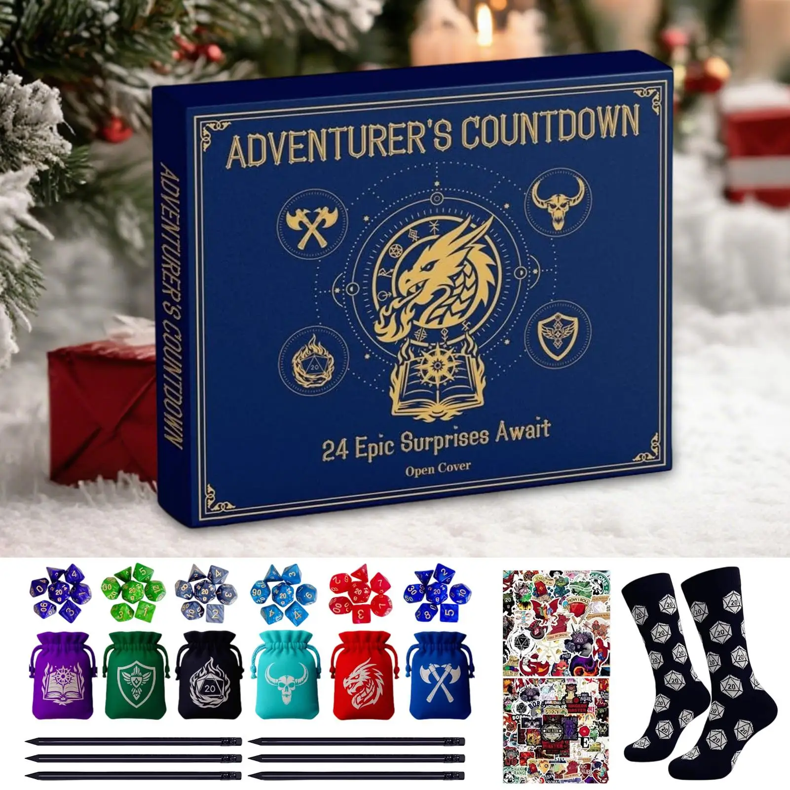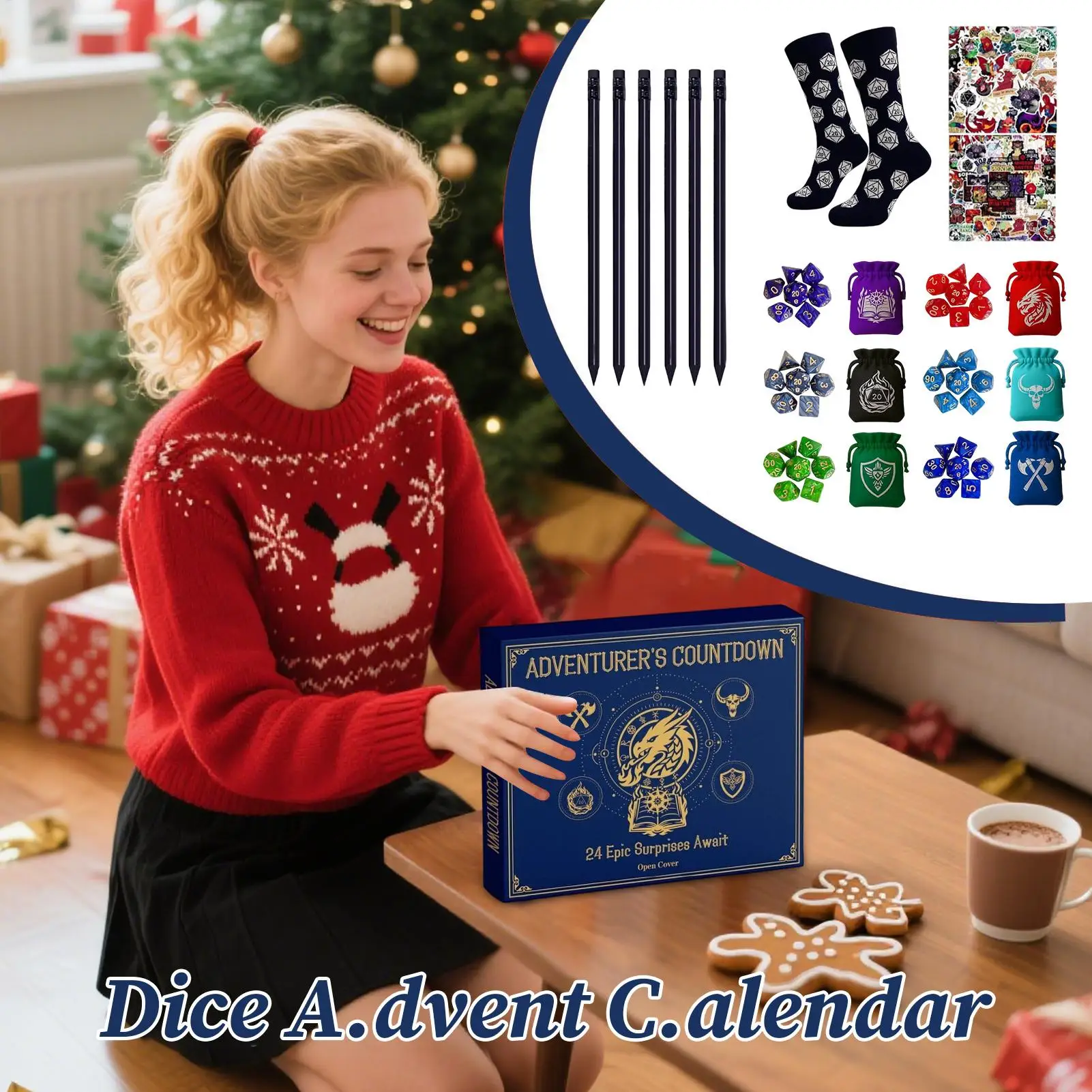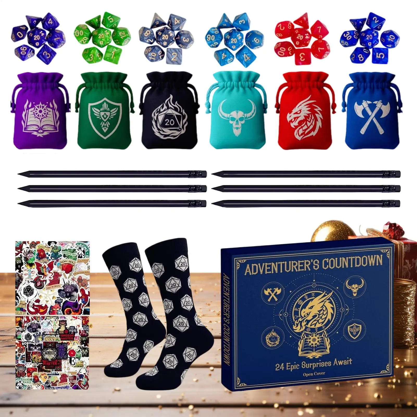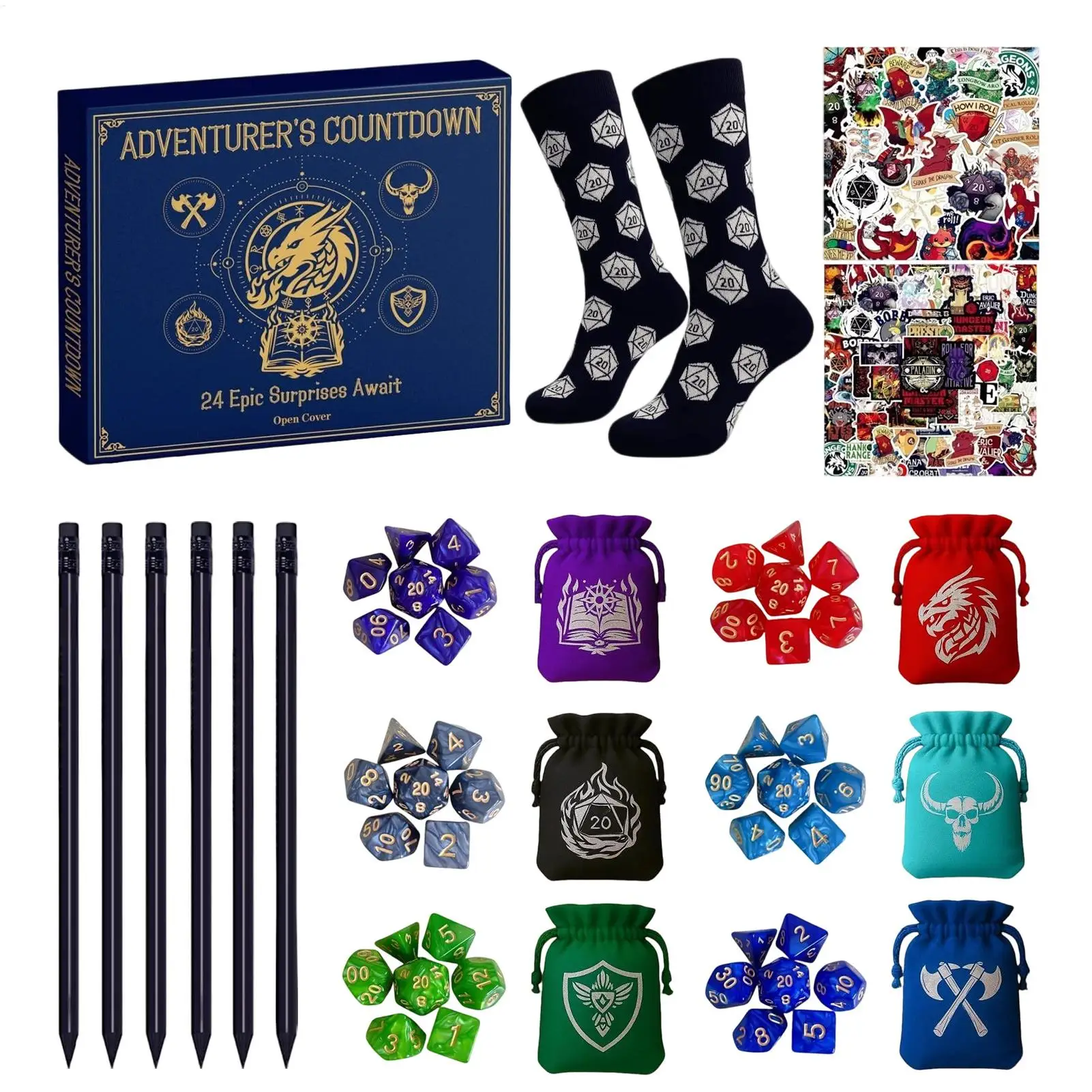 Christmas Advent Calendar With Polyhedral Dice Pouches Necklaces Stickers Socks Funny Christmas Gifts For Board Game Lovers