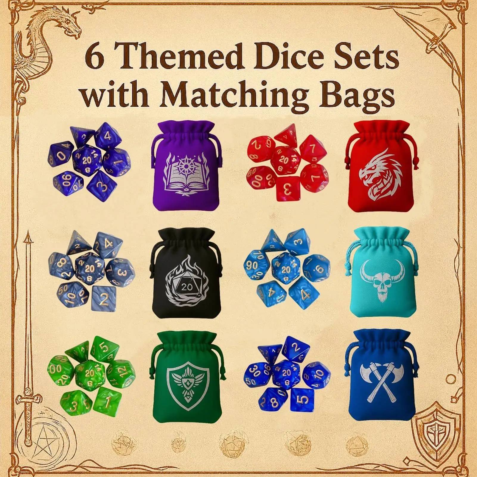 2.Convenient Carrying: Includes pouches enabling easy carry and systematic arrangement, along with a six polyhedral dice set crafted to meet gamers’ needs, providing convenience and reliability when transporting or storing your game tools