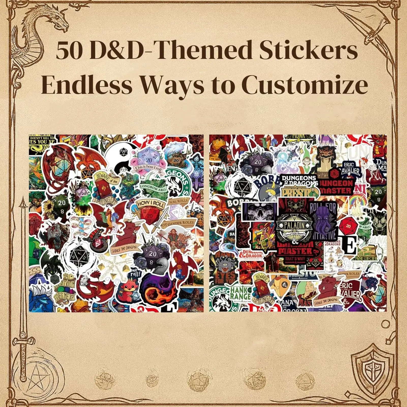 5.Boost Ambiance: Bring adventure to life by adorning notebooks and gear using 50 pieces of fantasy-inspired stickers, offering a fun way to decorate belongings