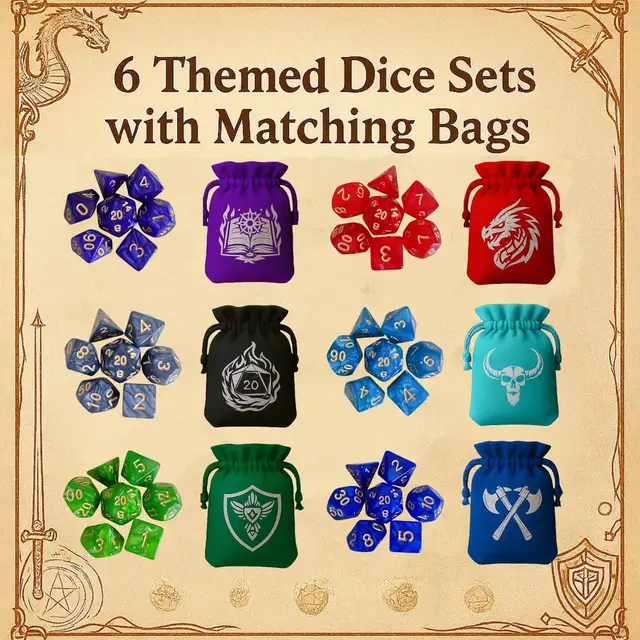 2.Convenient to Carry: Comes with pouches, ensuring easy carry and organization, while the six polyhedral dice set caters perfectly to gamers, simplifying transport and keeping every piece neatly arranged for uninterrupted gameplay