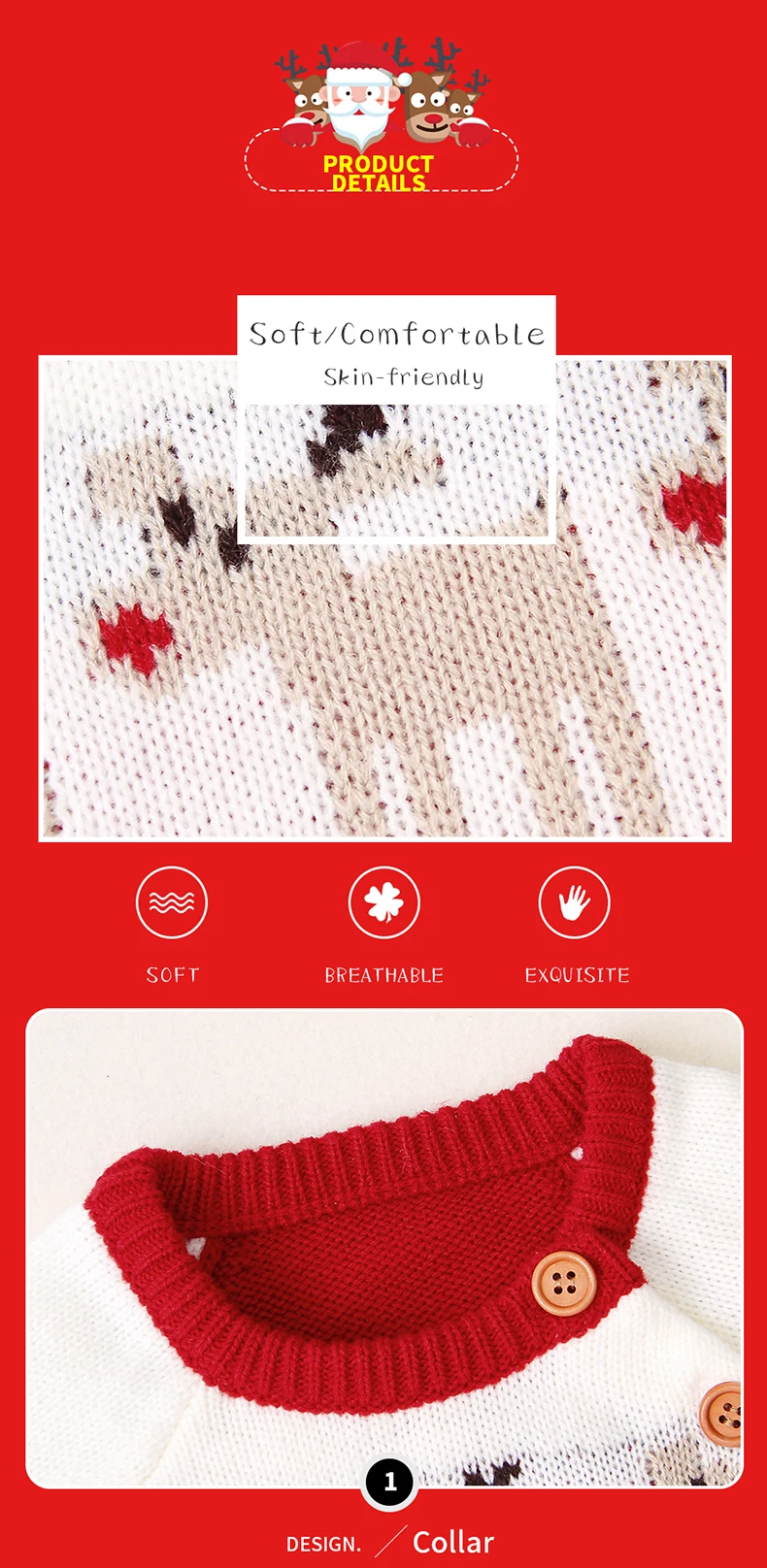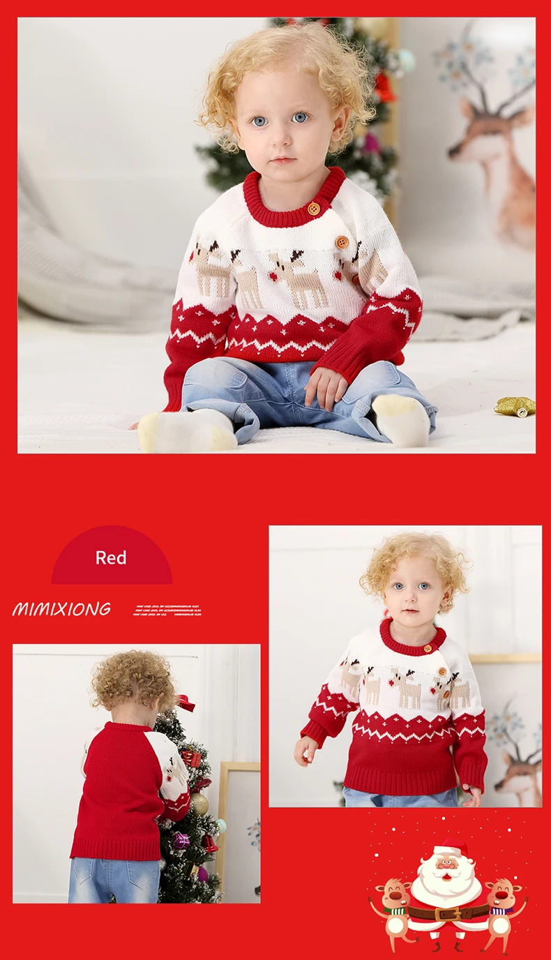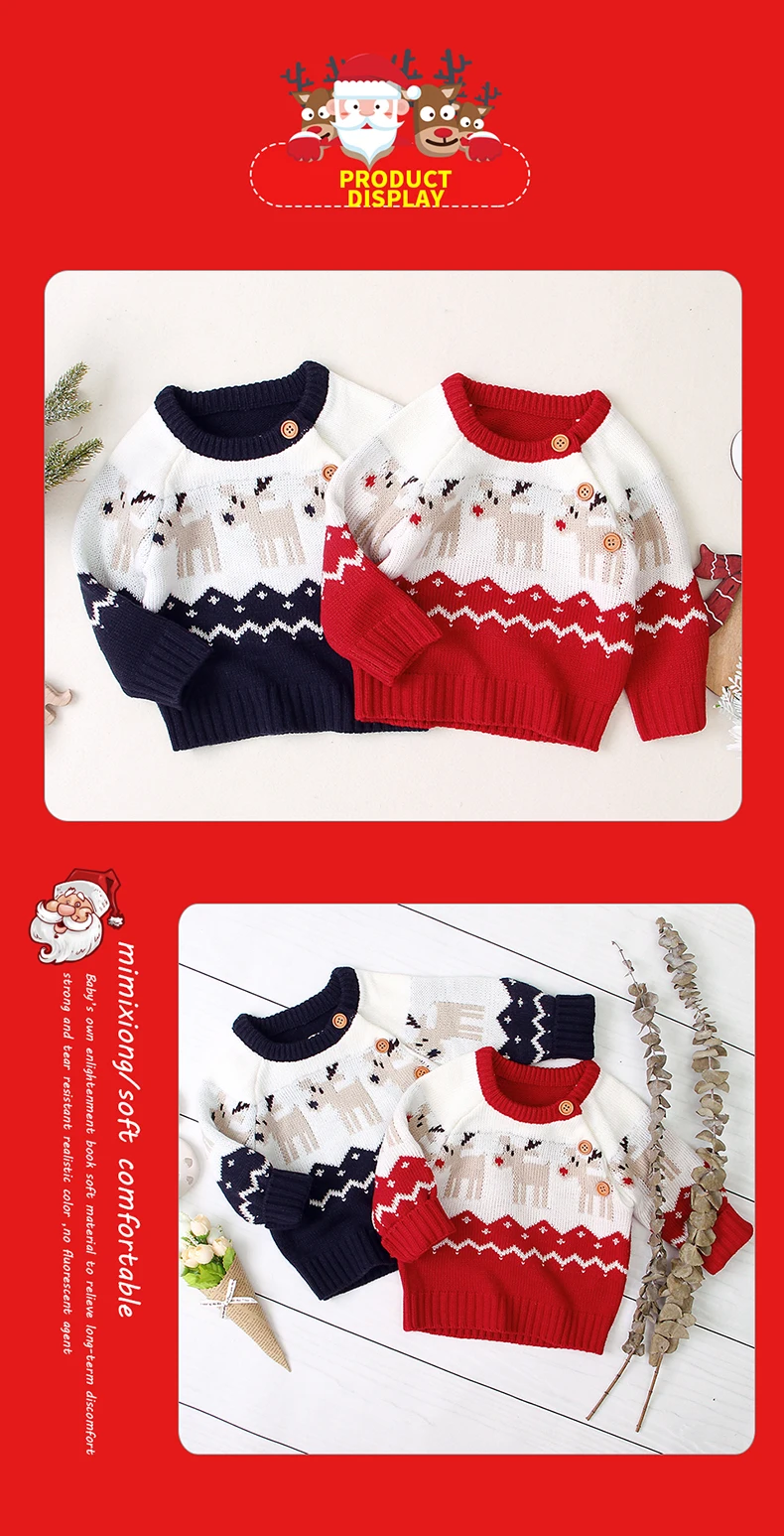 Christmas Baby Sweater Long Sleeve Winter Newborn Girl Boy Pullover Fashion Cute Elk Infant Kid Clothing