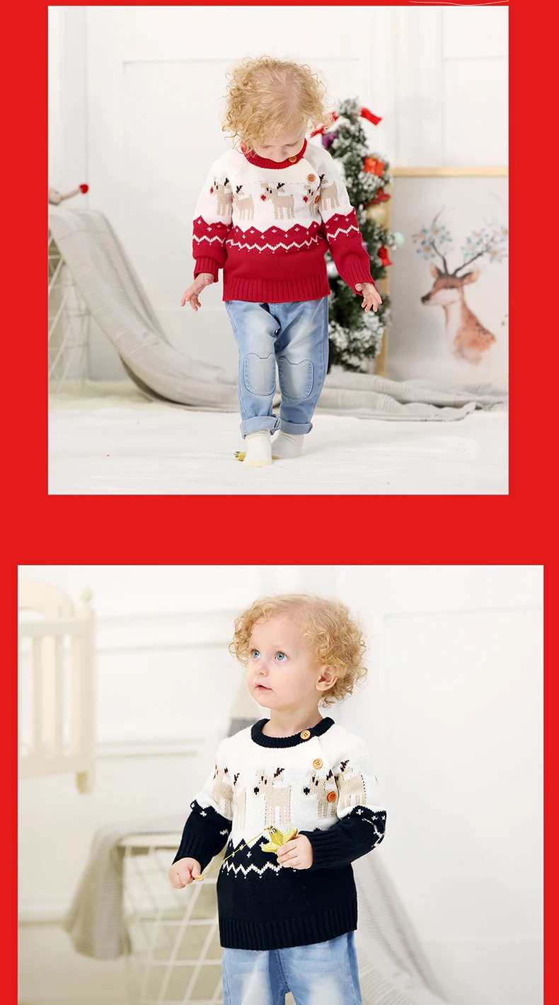 Christmas Baby Sweater Long Sleeve Winter Newborn Girl Boy Pullover Fashion Cute Elk Infant Kid Clothing 0-18M Knit Cartoon Tops