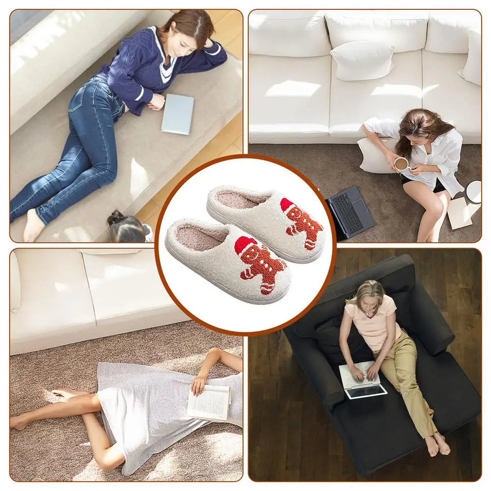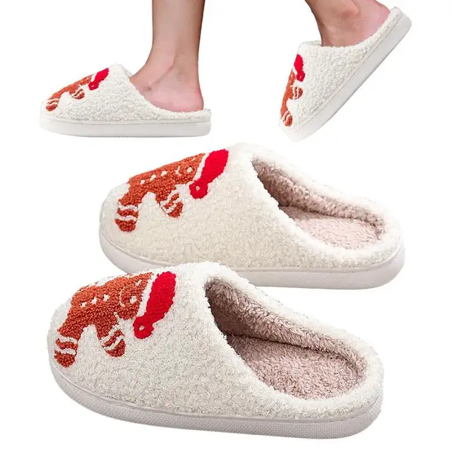 2.Comfortable Wear: Enjoy the warmth and softness of these gingerbread man slippers, which have a cozy fluffy fleece lining and a slip- design for easy wear. You will get a warm winter with these slippers.