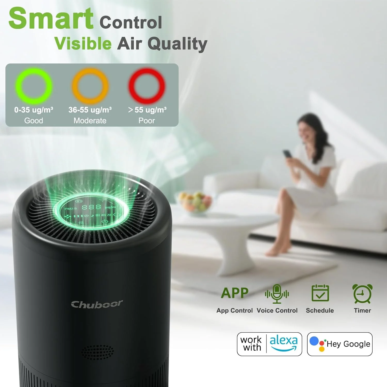 📲【𝐀𝐏𝐏&𝐕𝐨𝐢𝐜𝐞 𝐂𝐨𝐧𝐭𝐫𝐨𝐥】With the PJ Robot APP, you can easily control your air purifier from anywhere. Check real-time air quality, filter life, and adjust settings like power, timing, and fan speed with just a tap. Set auto modes based on air conditions for smart, hands-free purification. Fully compatible with Alexa voice control, truly hands-free living and a smarter home experience(Note:Please connect to a 2.4 GHz WiFi network for APP pairing.).