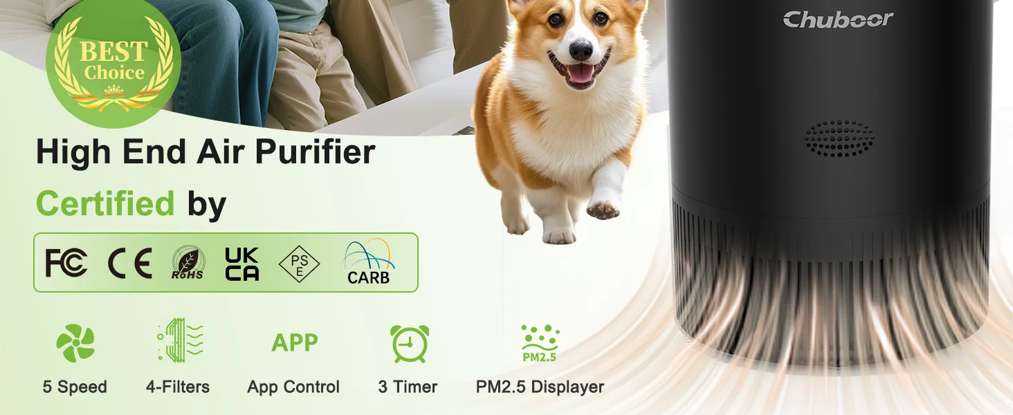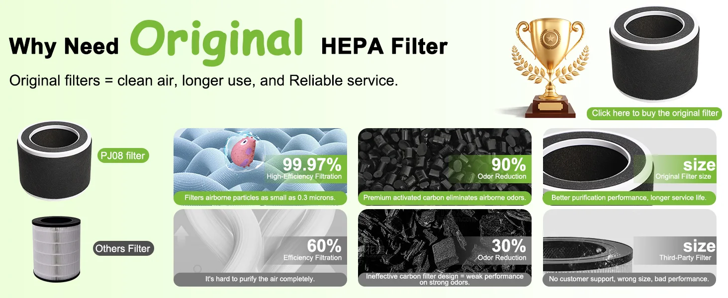 🏅【𝐐𝐮𝐢𝐞𝐭 & 𝐂𝐞𝐫𝐭𝐢𝐟𝐢𝐞𝐝 𝐒𝐚𝐟𝐞】In Sleep Mode, the PJ08 air purifier runs as quietly as 25dB—cleaning the air without interrupting your rest. With 3 timer options (2,4, 8H) and a Child Lock, it ensures uninterrupted purification and energy efficiency.Fully tested and certified by FCC, CARB, CE, PSE, and UKCA, ensuring reliable quality and safe operation. Any questions? We’re here to help.