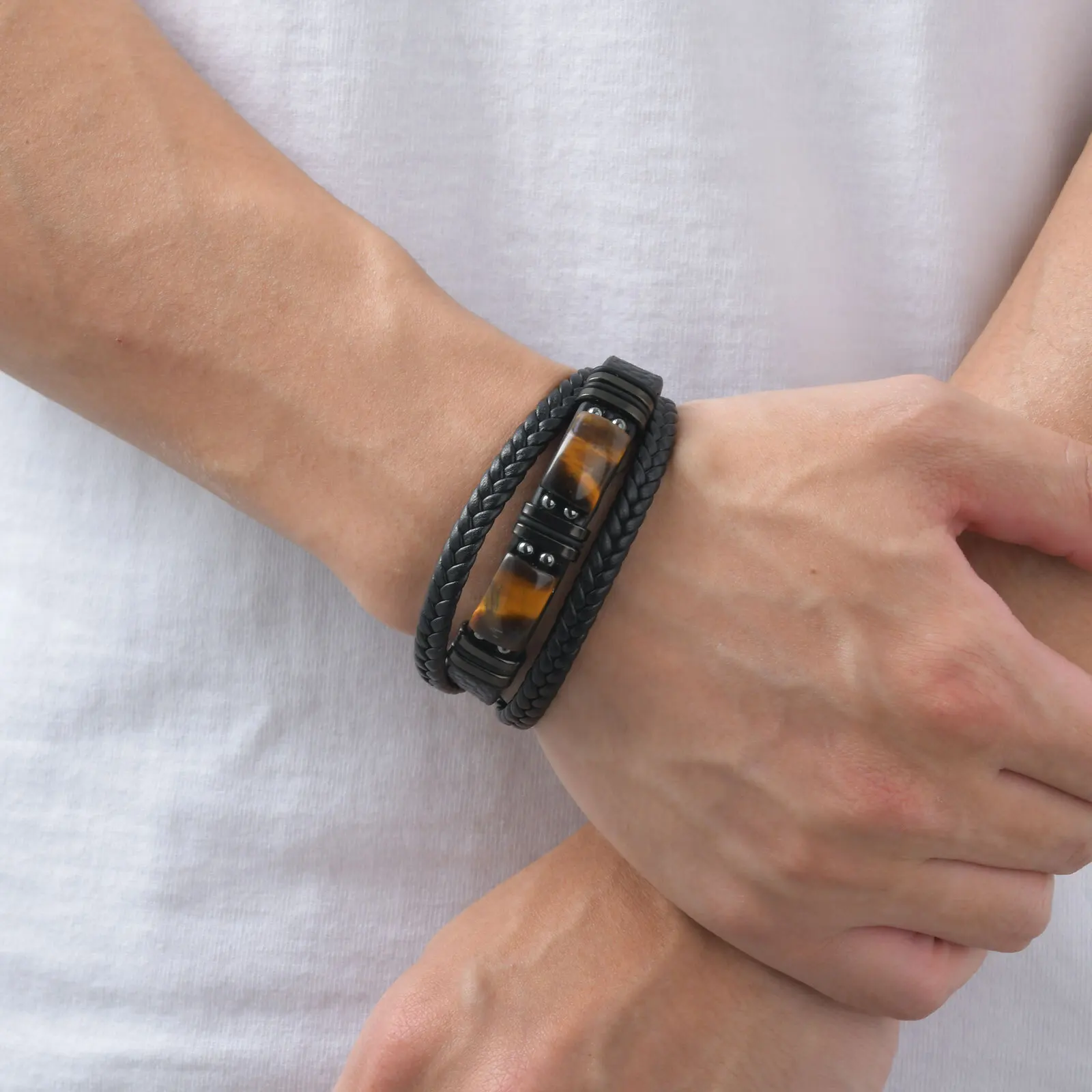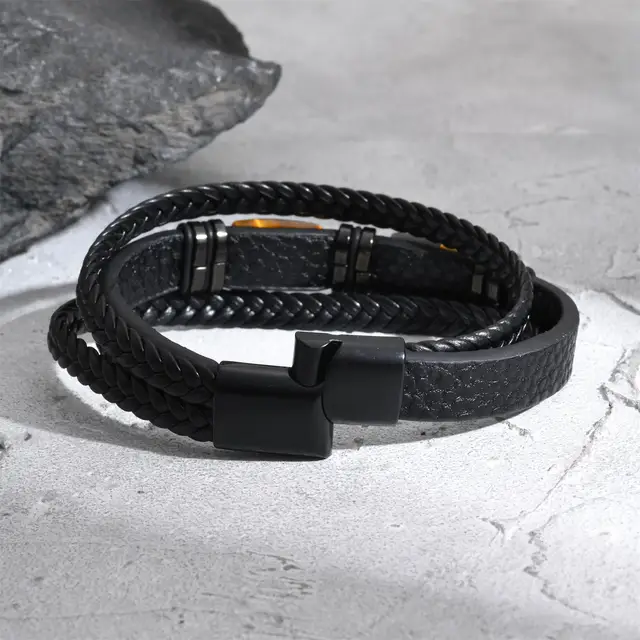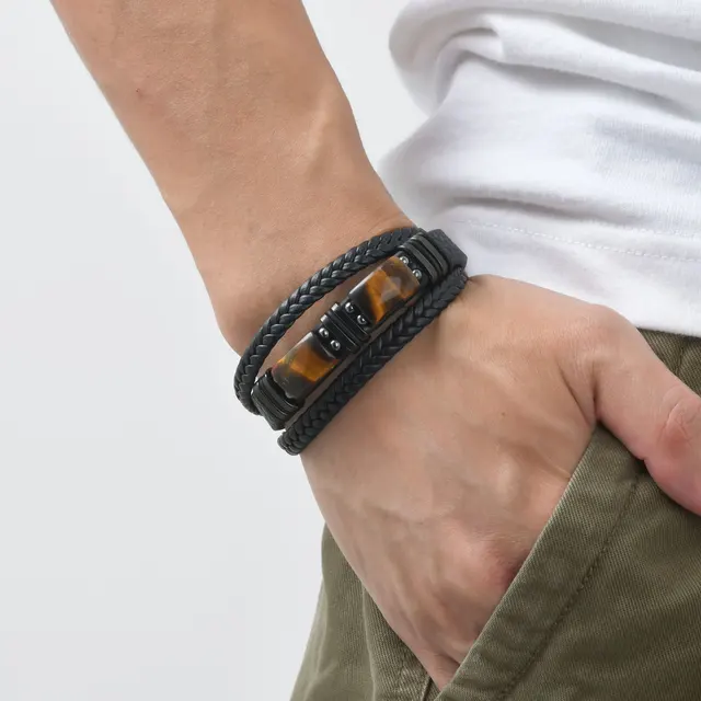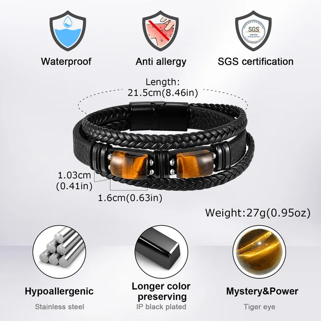 Be the first to review “Chunky Leather Bracelet for Men Boys,Two Big Tiger Eye Natural Brown Stone Bracelets,Rock Punk Causal”