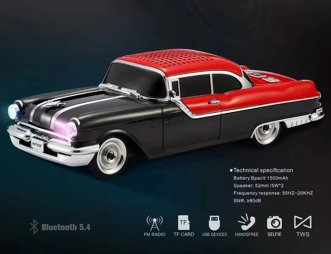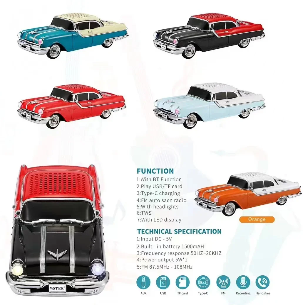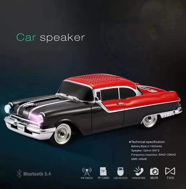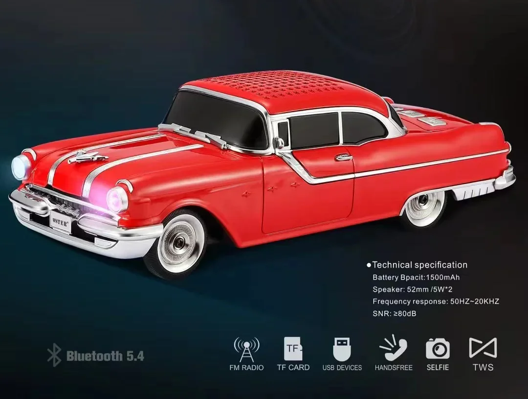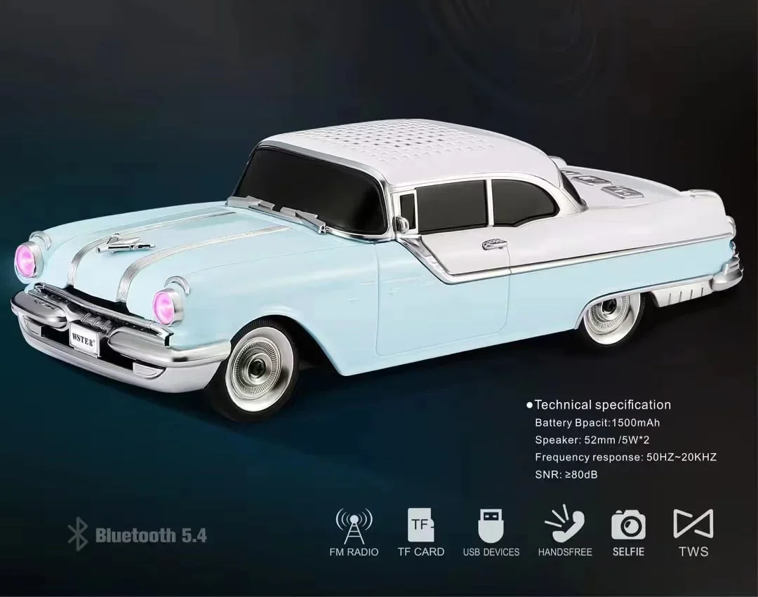Classic Car Shaped Speaker Wireless Bluetooth Super Bass with Subwoofer TF Card FM Radio AUX Handsfree TWS Function Sound Box