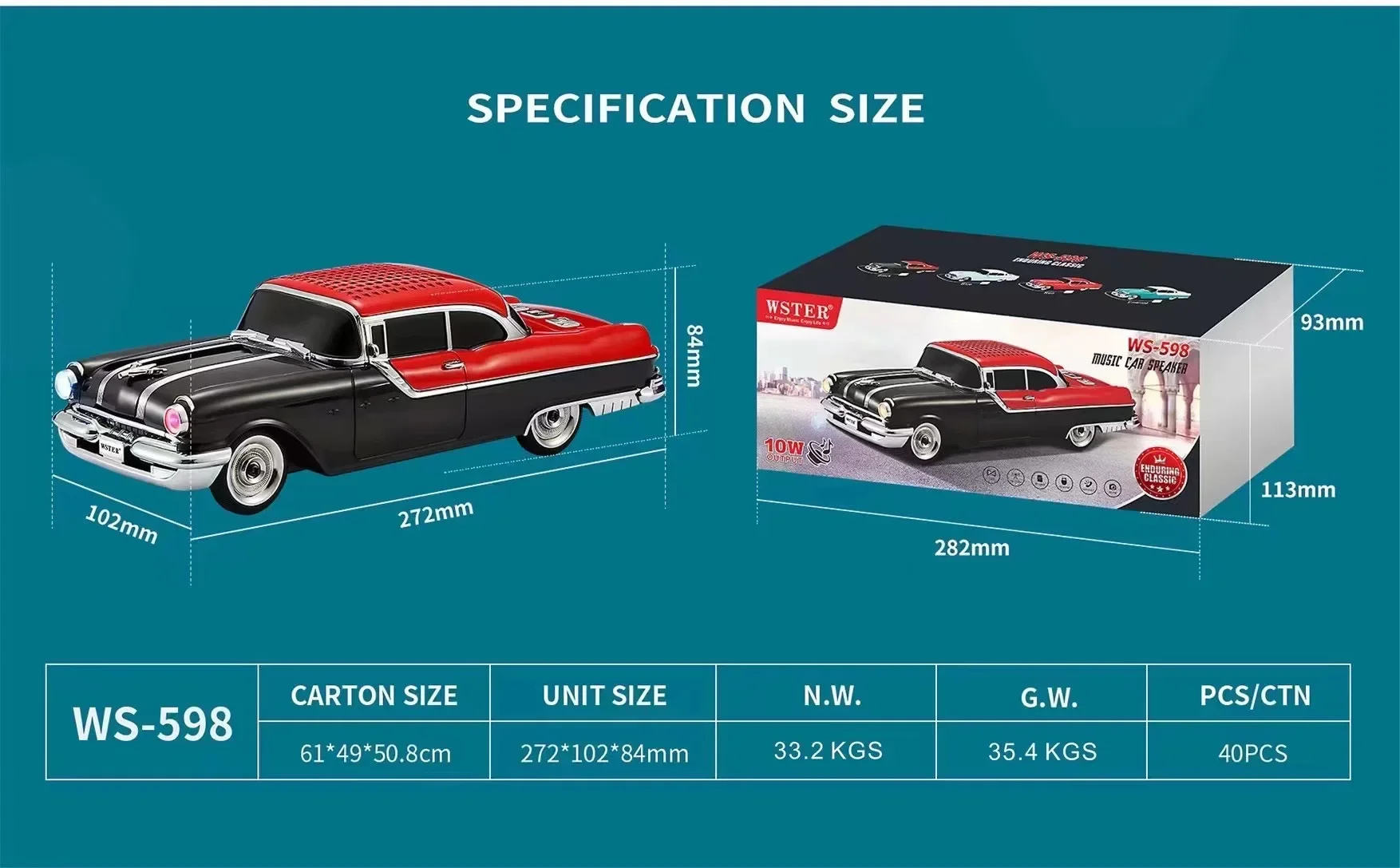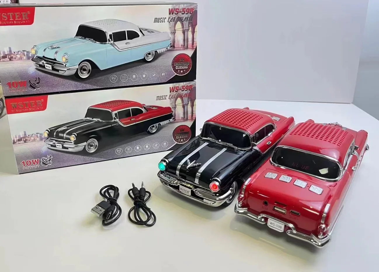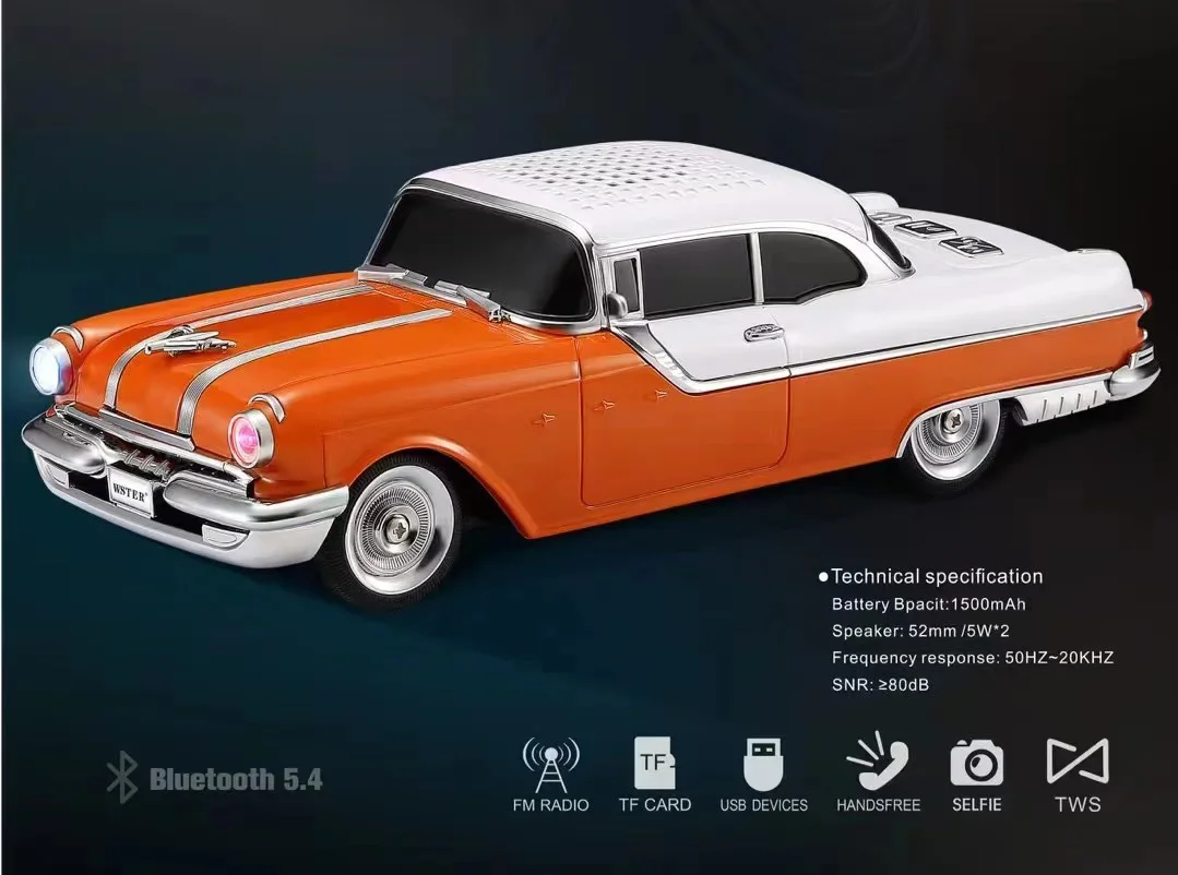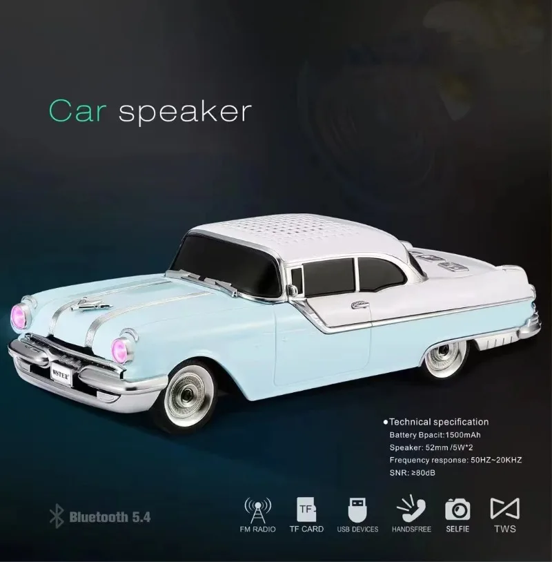 Classic Car Shaped Speaker Wireless Bluetooth Super Bass with Subwoofer TF Card FM Radio AUX Handsfree TWS Function Sound Box