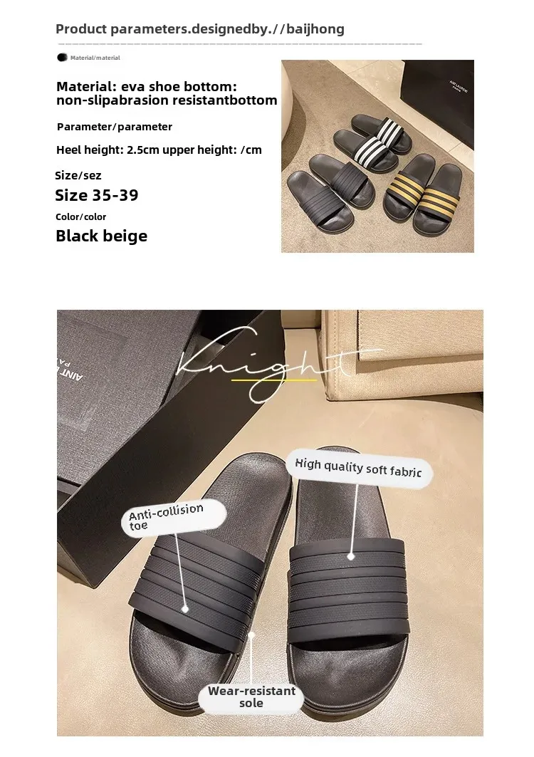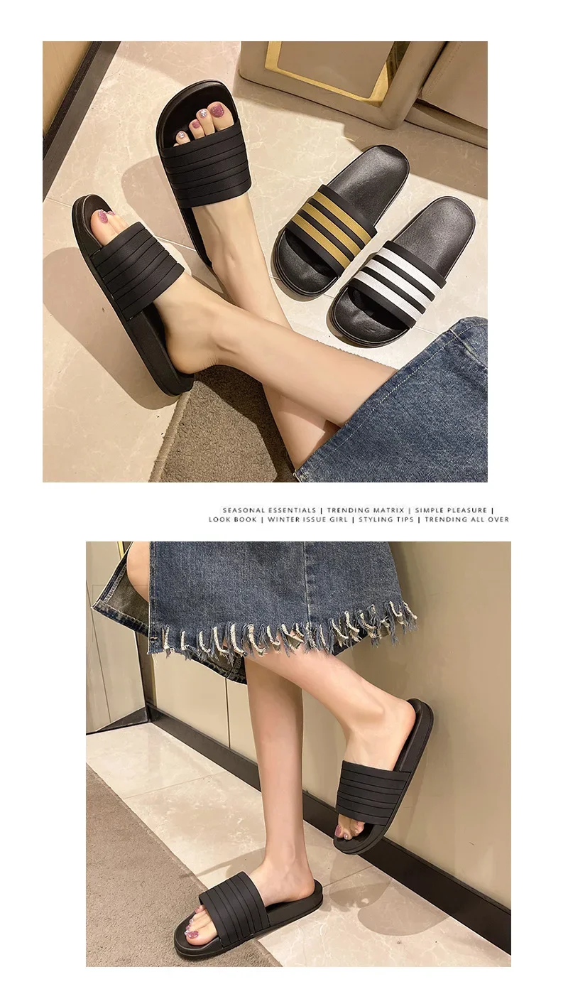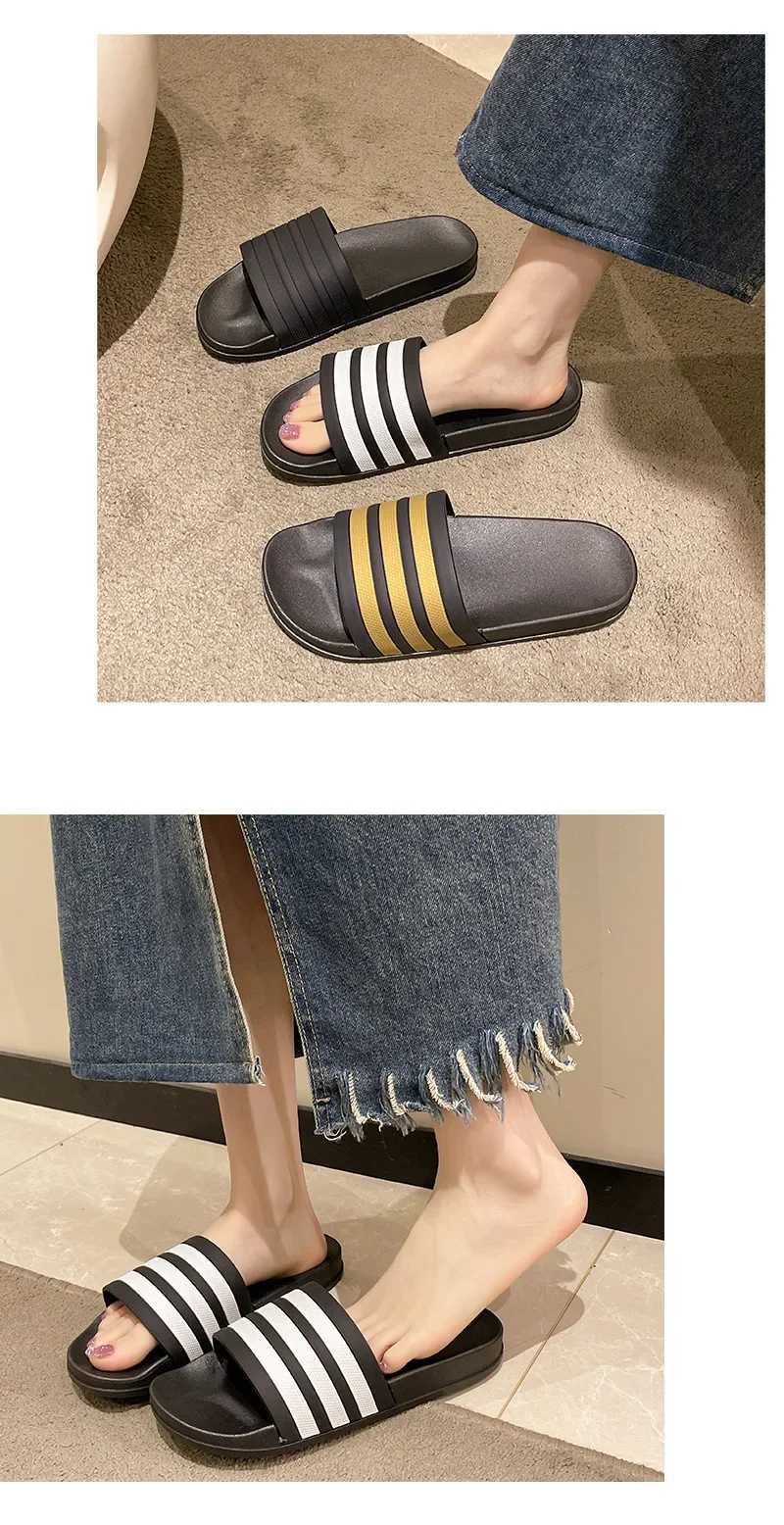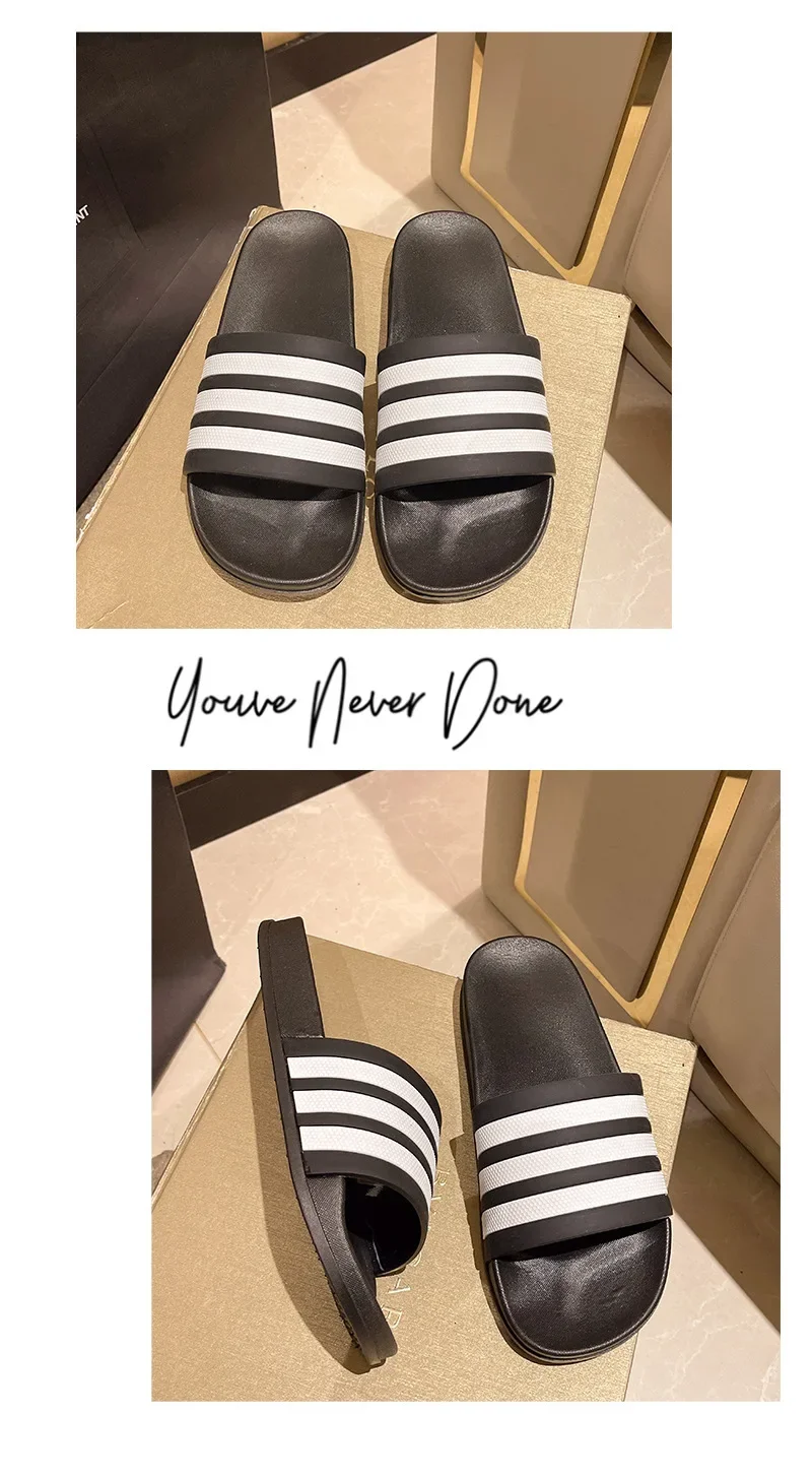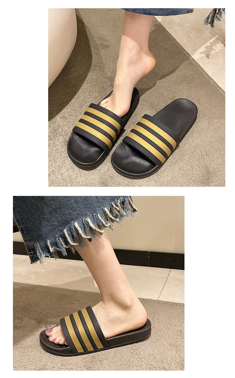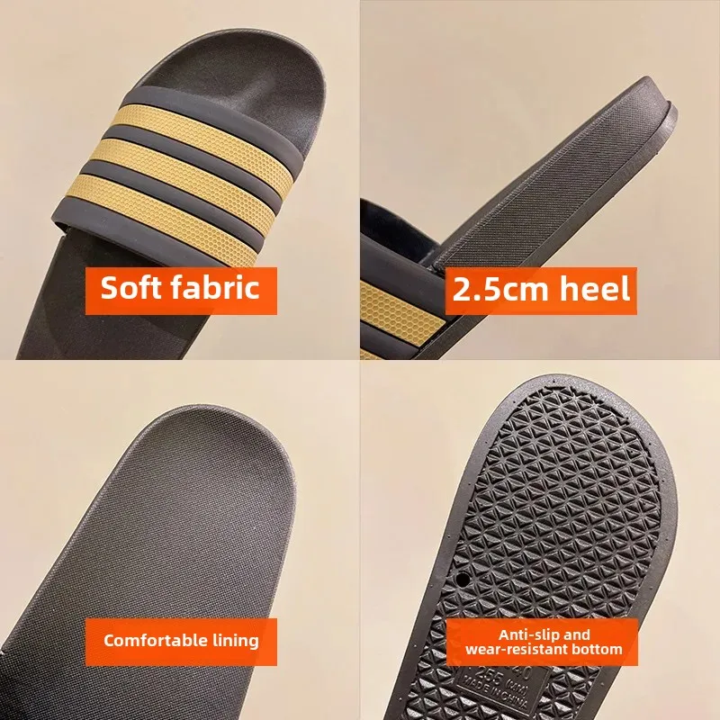 • Classic Three-Bar Design : The classic three-bar design of these slippers adds a touch of sophistication, making them perfect for casual outings or beachwear.