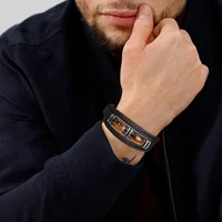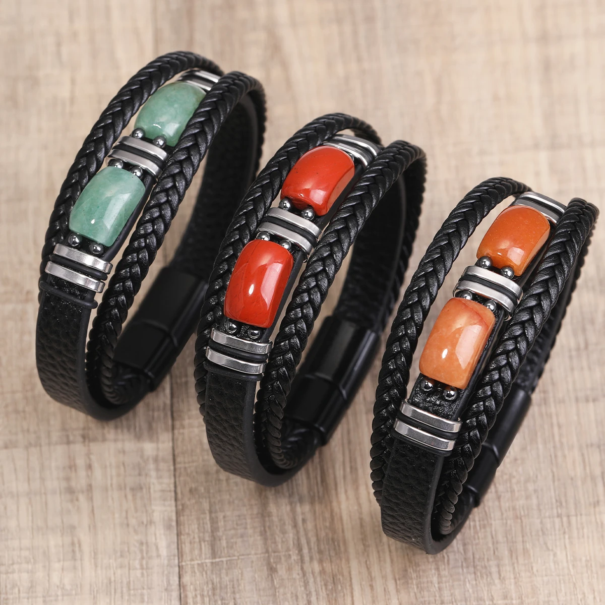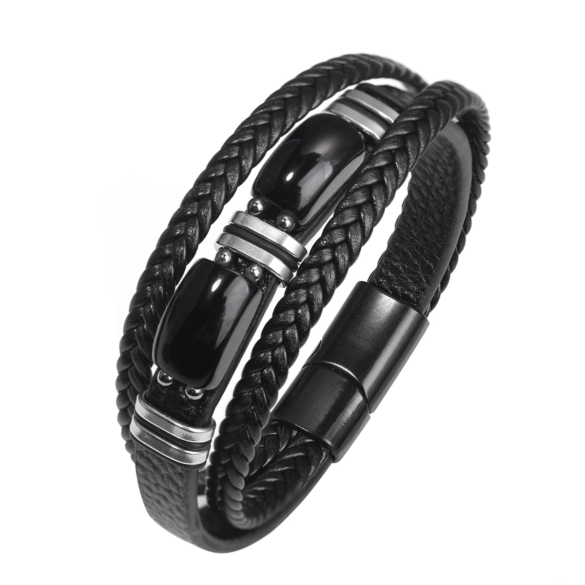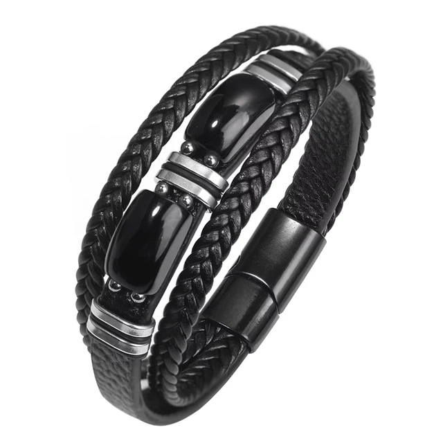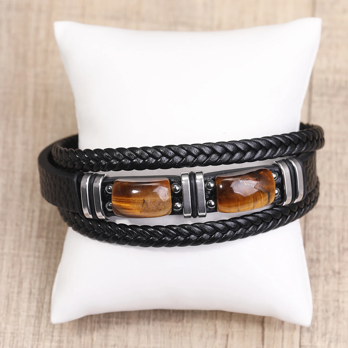 Classic Charm Man Bracelet Natural Stone Tiger Eye Stone Obsidian Bracelet Magnet Buckle Leather Bracelet