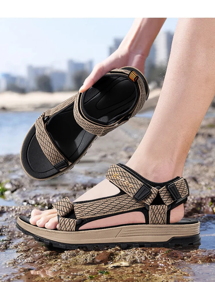 Classic Men Sandals Summer Open-Toe Leisure Beach Holiday Shoes Outdoor Lightweight Comfortable Walking