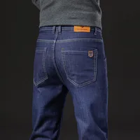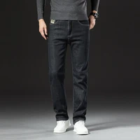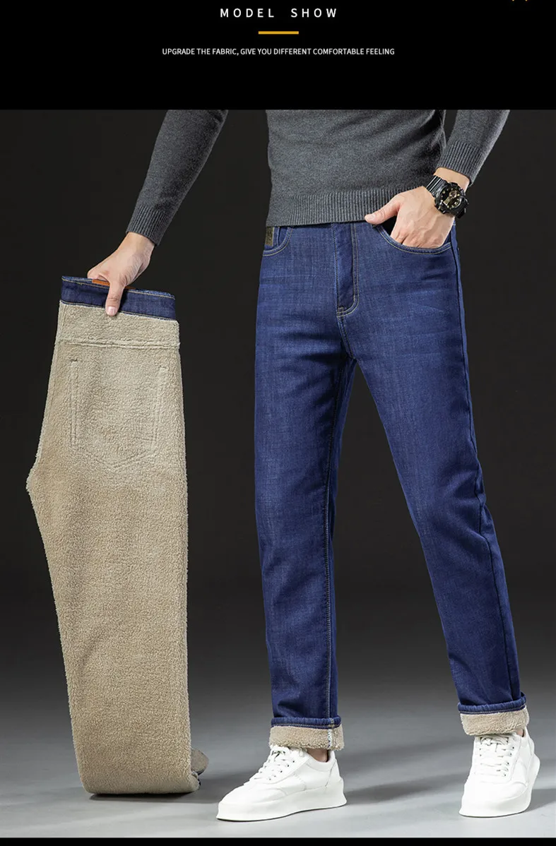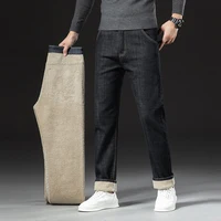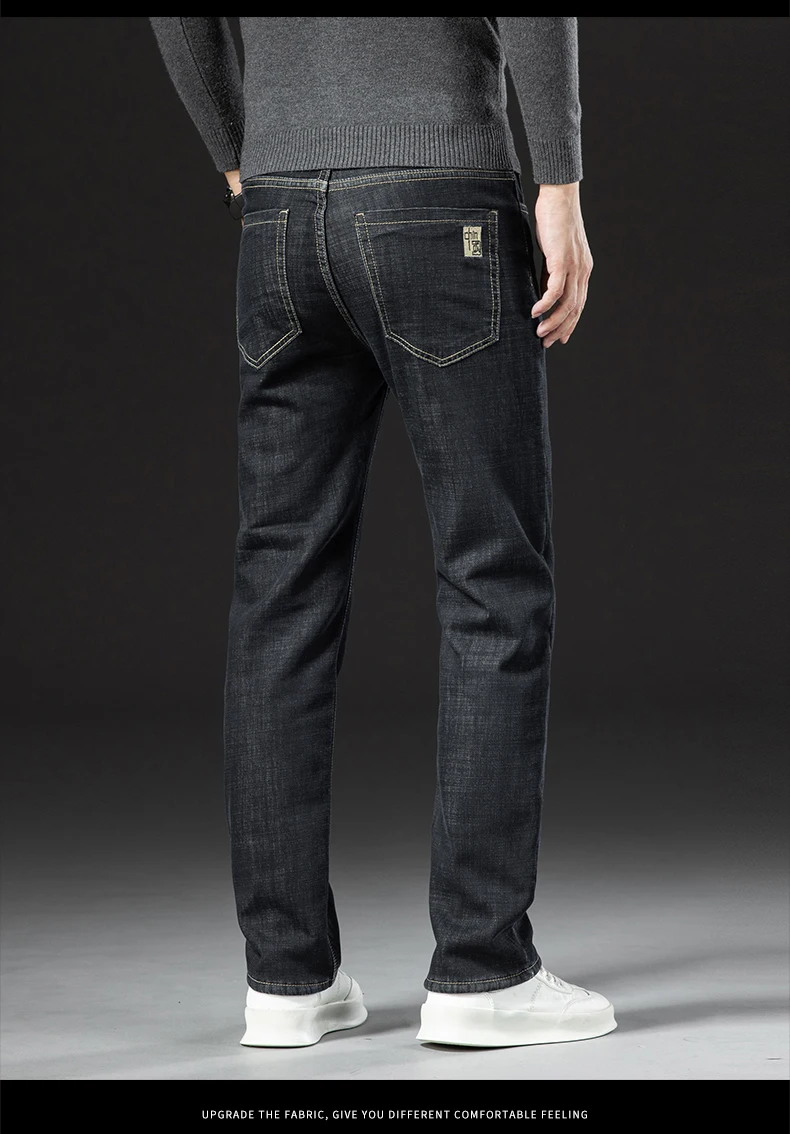 Classic Men's Business Casual Velvet Jeans 2024 New Winter Chinese Embroidery Straight Loose Warm and Comfortable Thick Pants