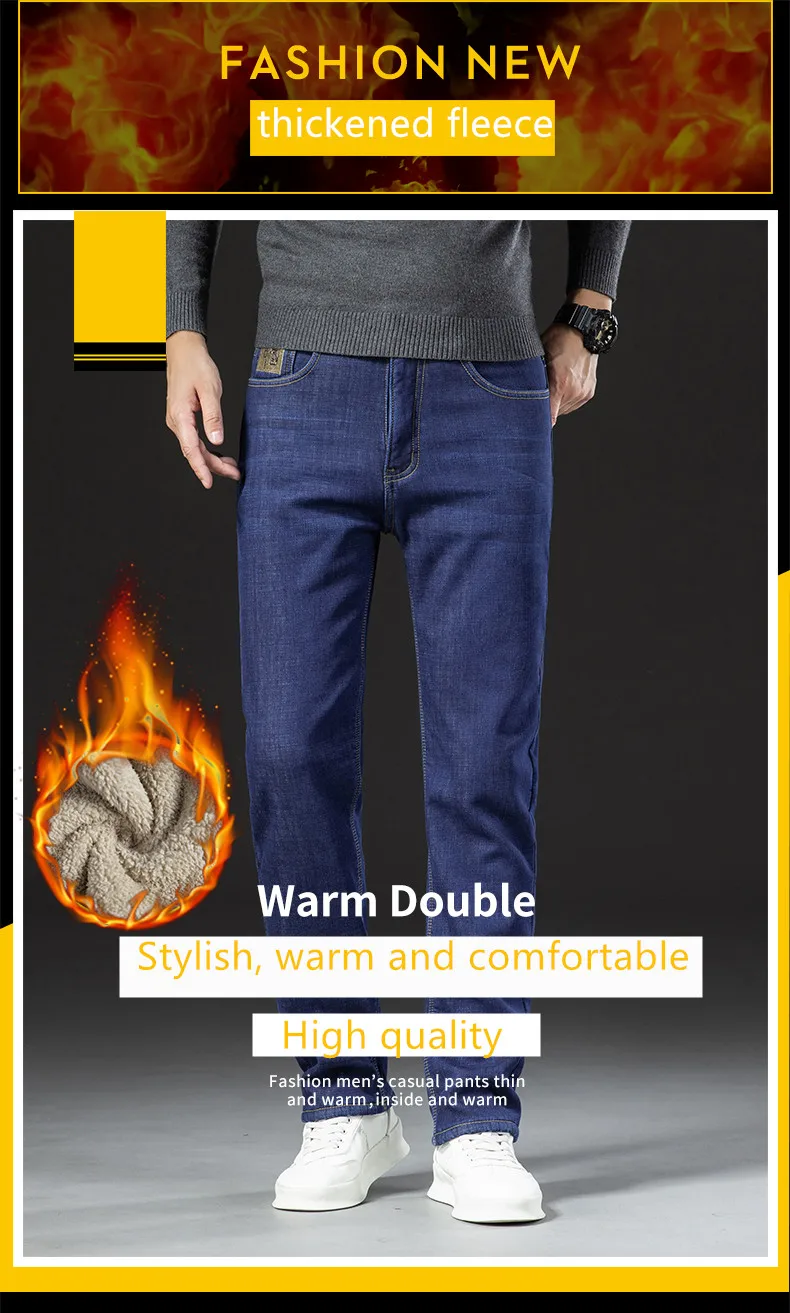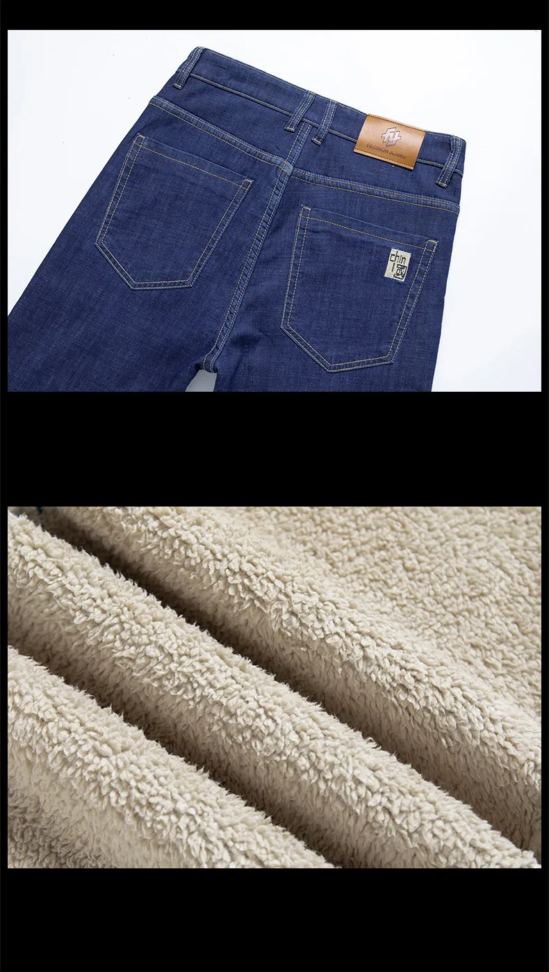 Classic Men’s Business Casual Velvet Jeans 2024 New Winter Chinese Embroidery Straight Loose Warm