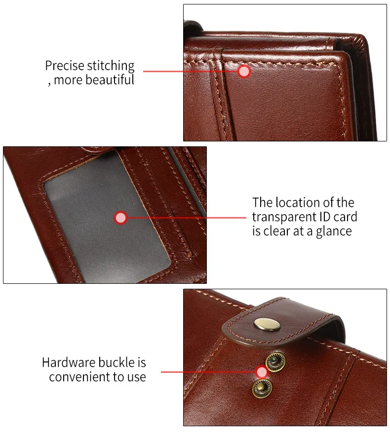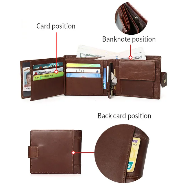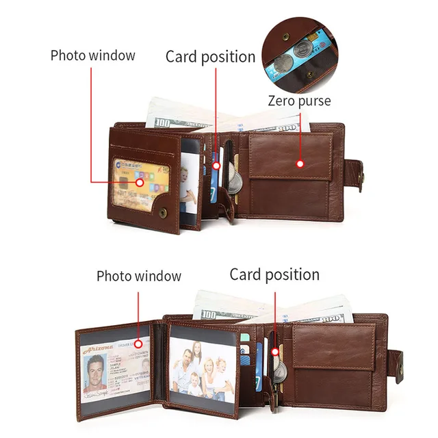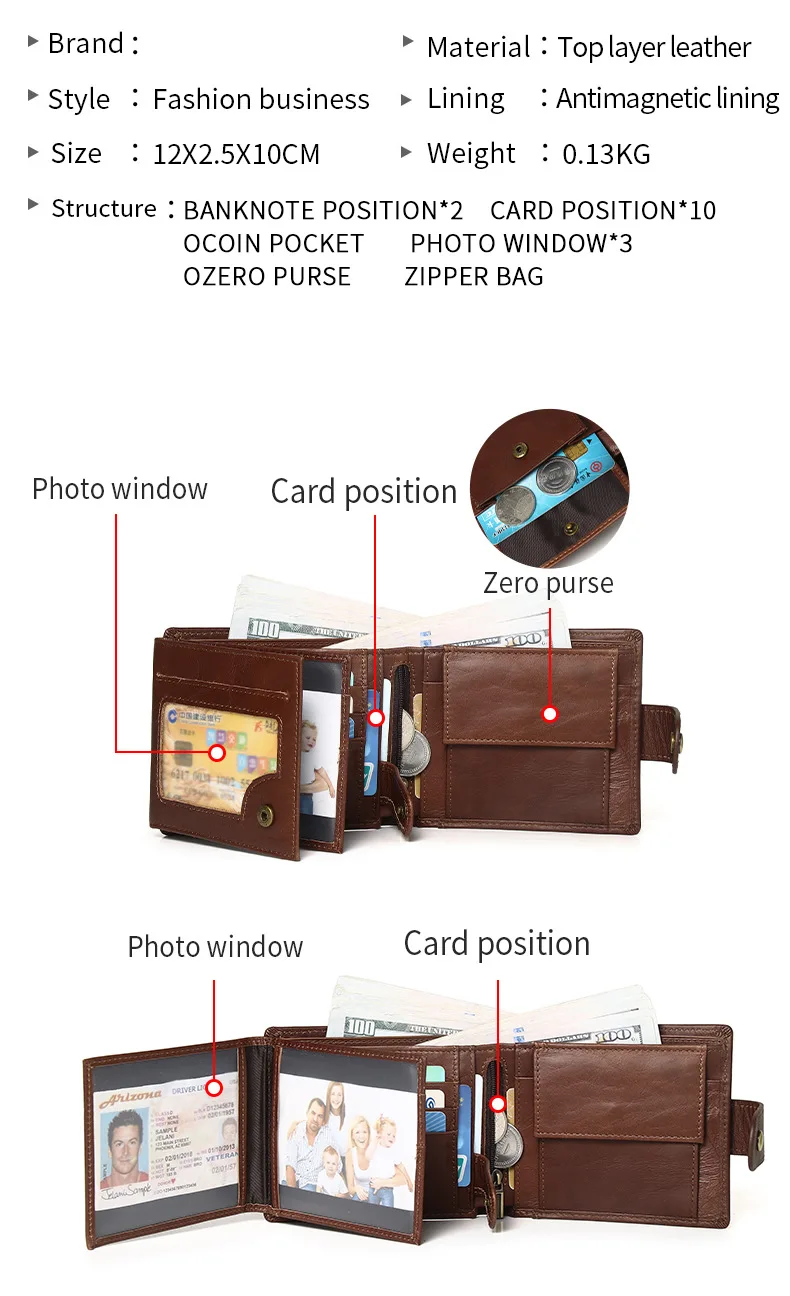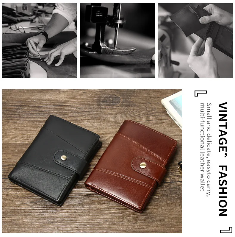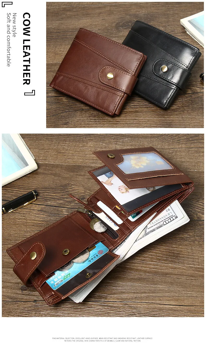 Genuine Leather Wallet for Men Two Folding Purses RFID Men's Card Holders Gentleman Wallets High Quality Luxury Designer Square