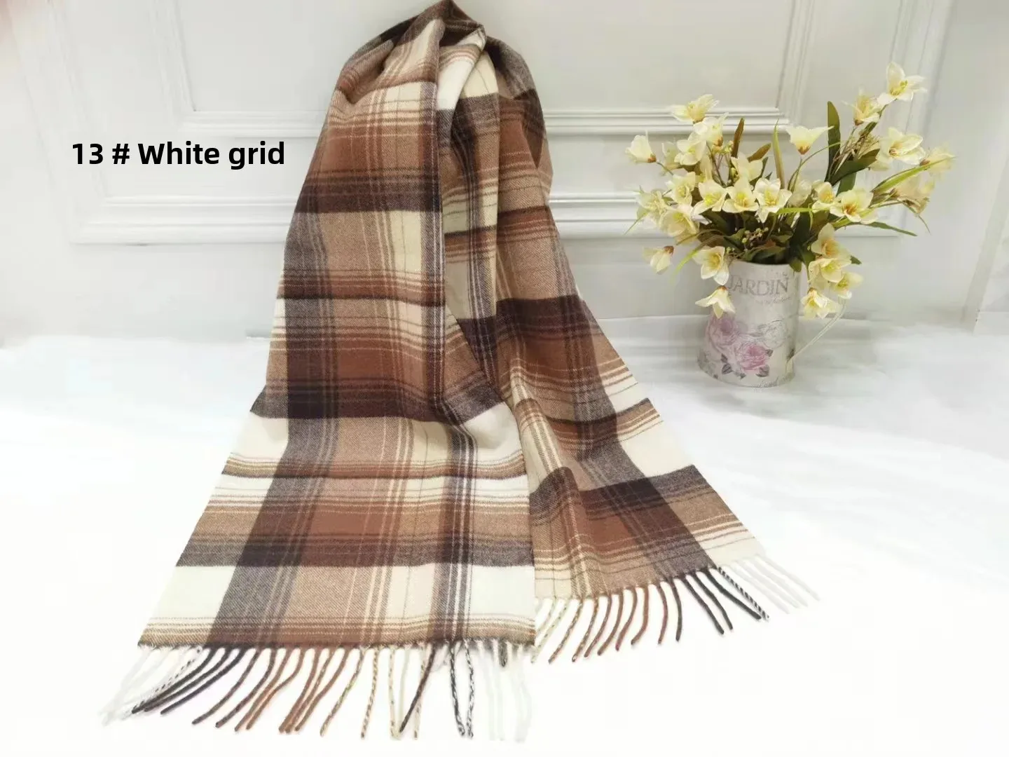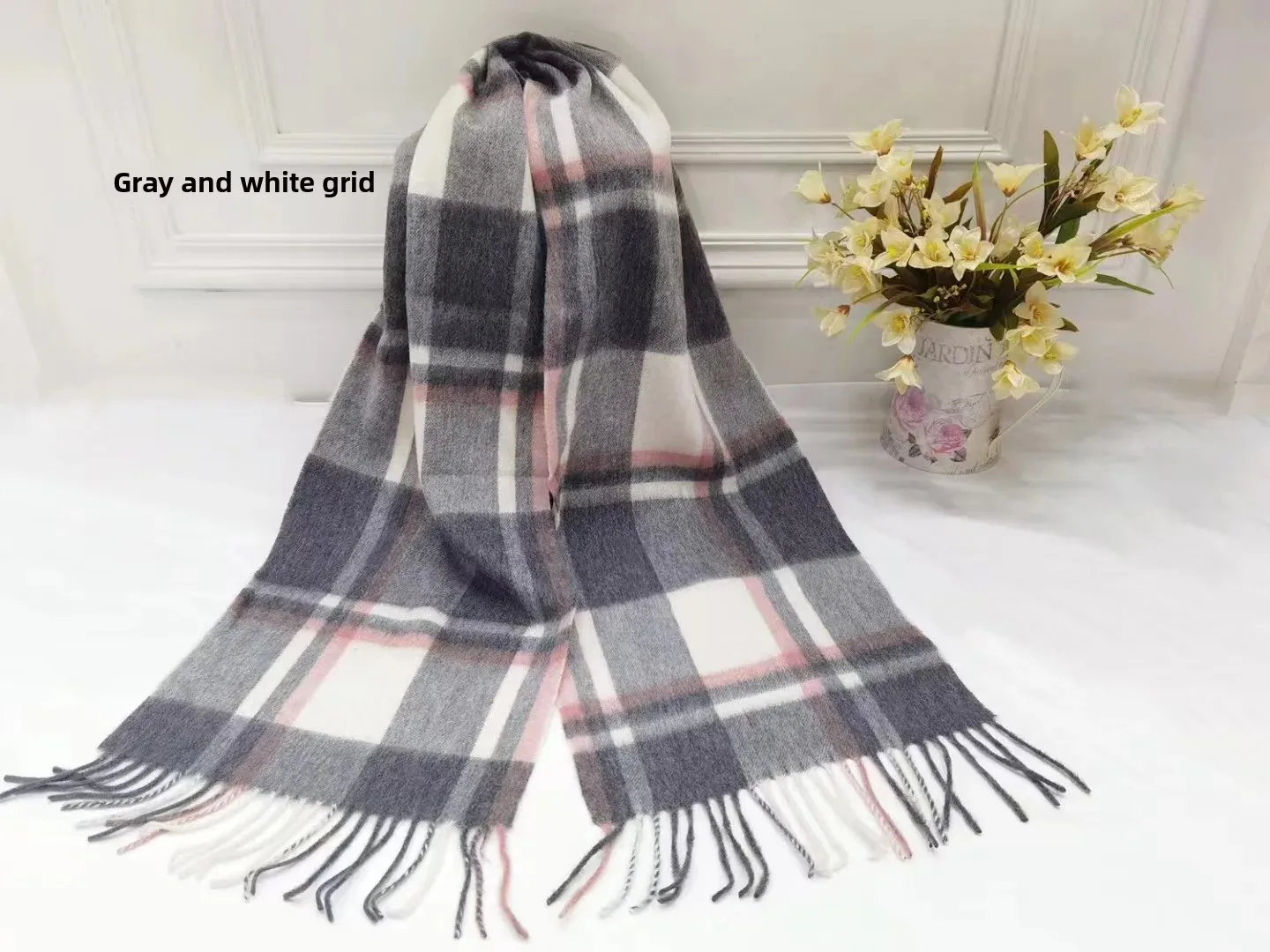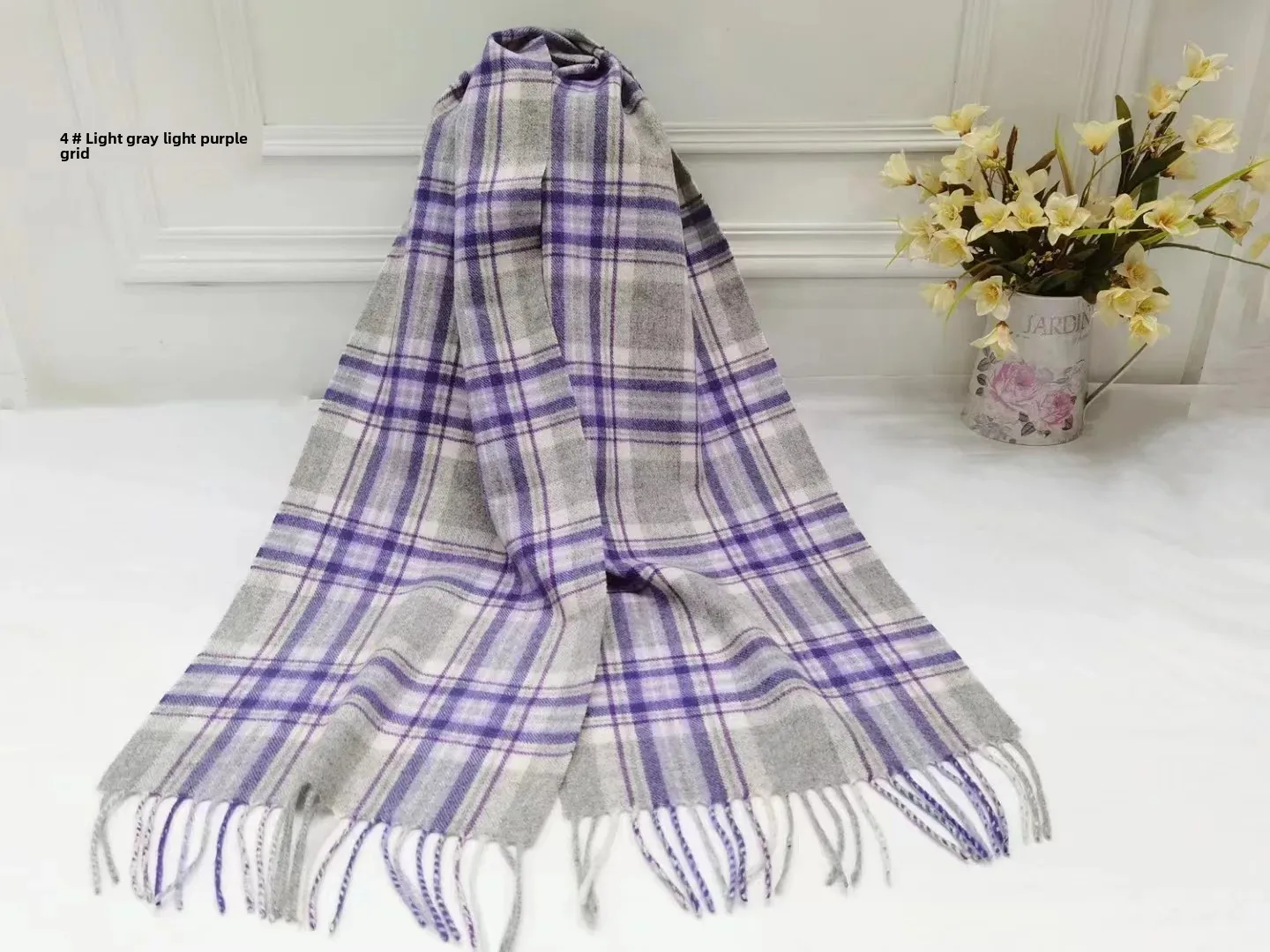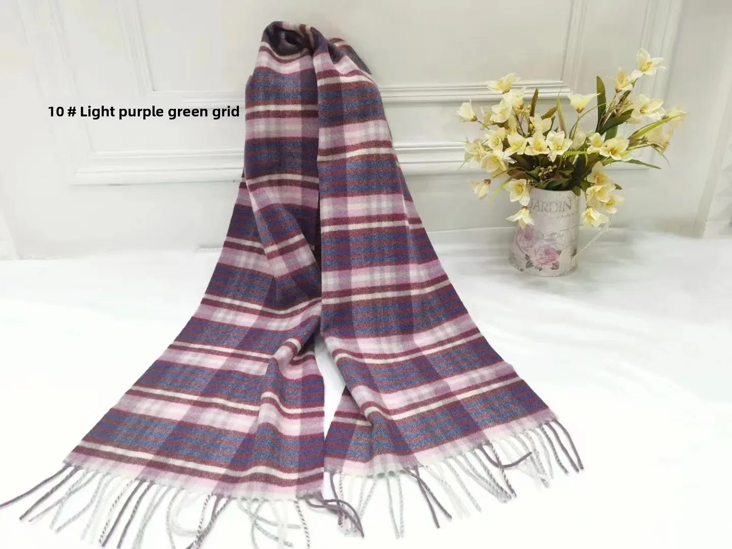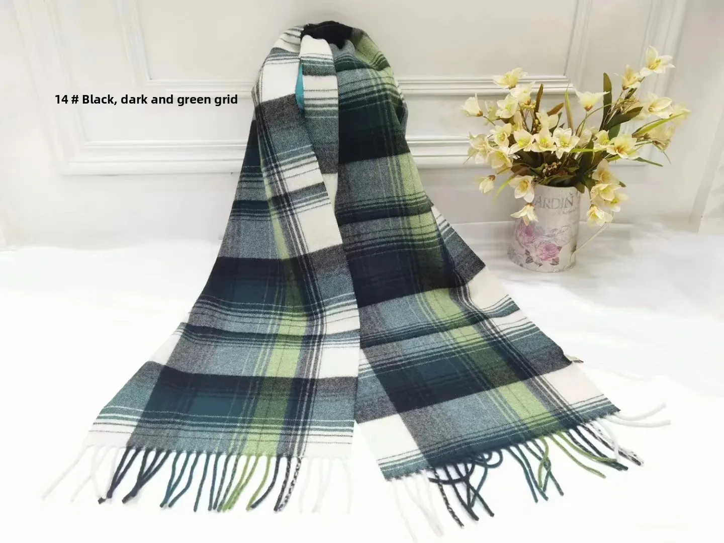 • Classic Plaid Design : The scarf features a timeless plaid design, embodying English fashion and adding a touch of elegance to any outfit.