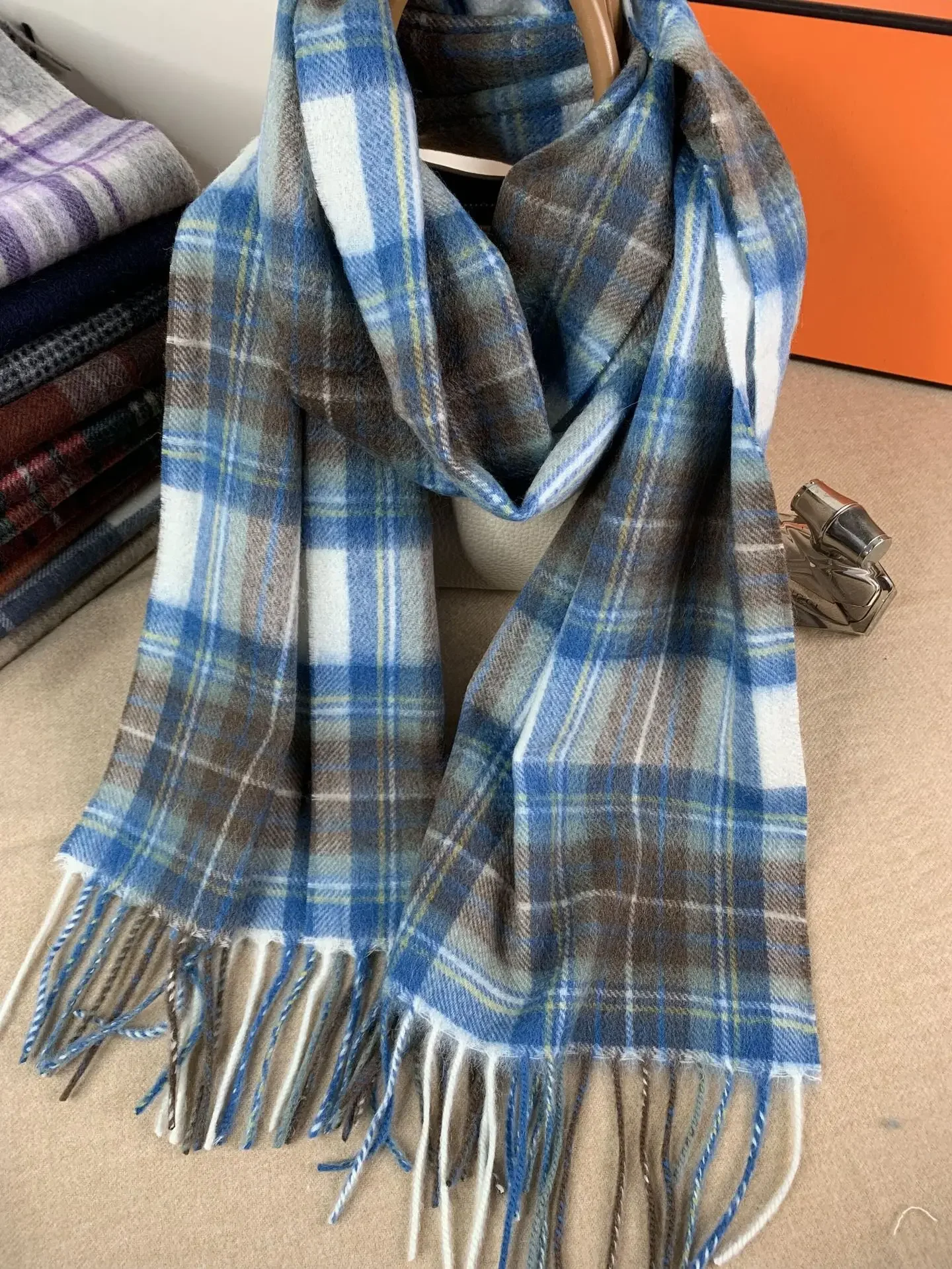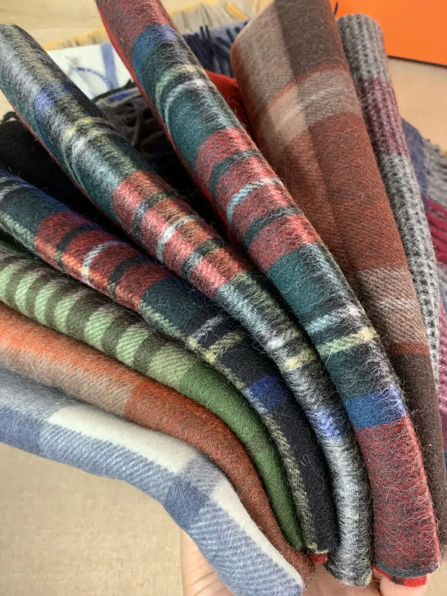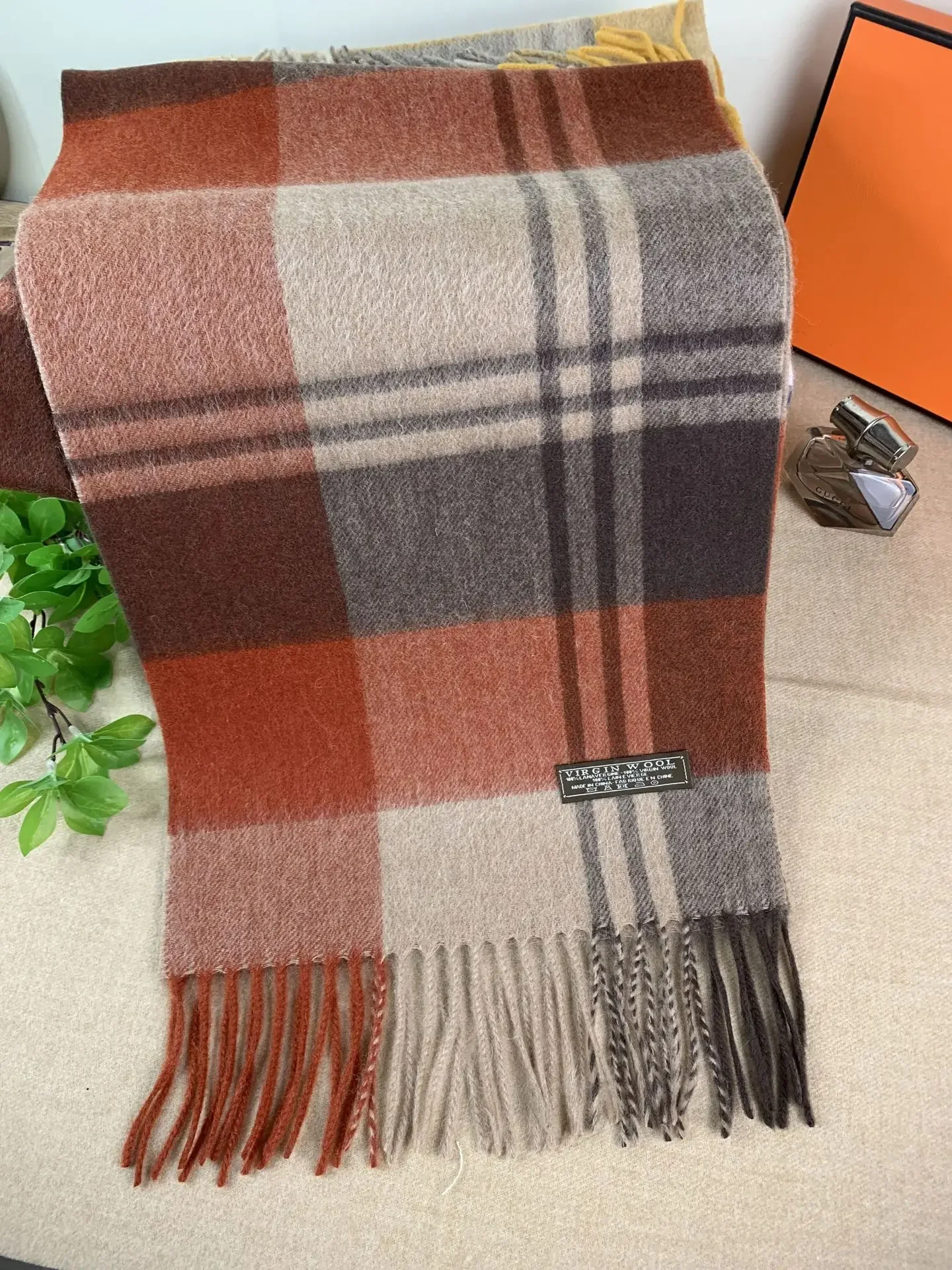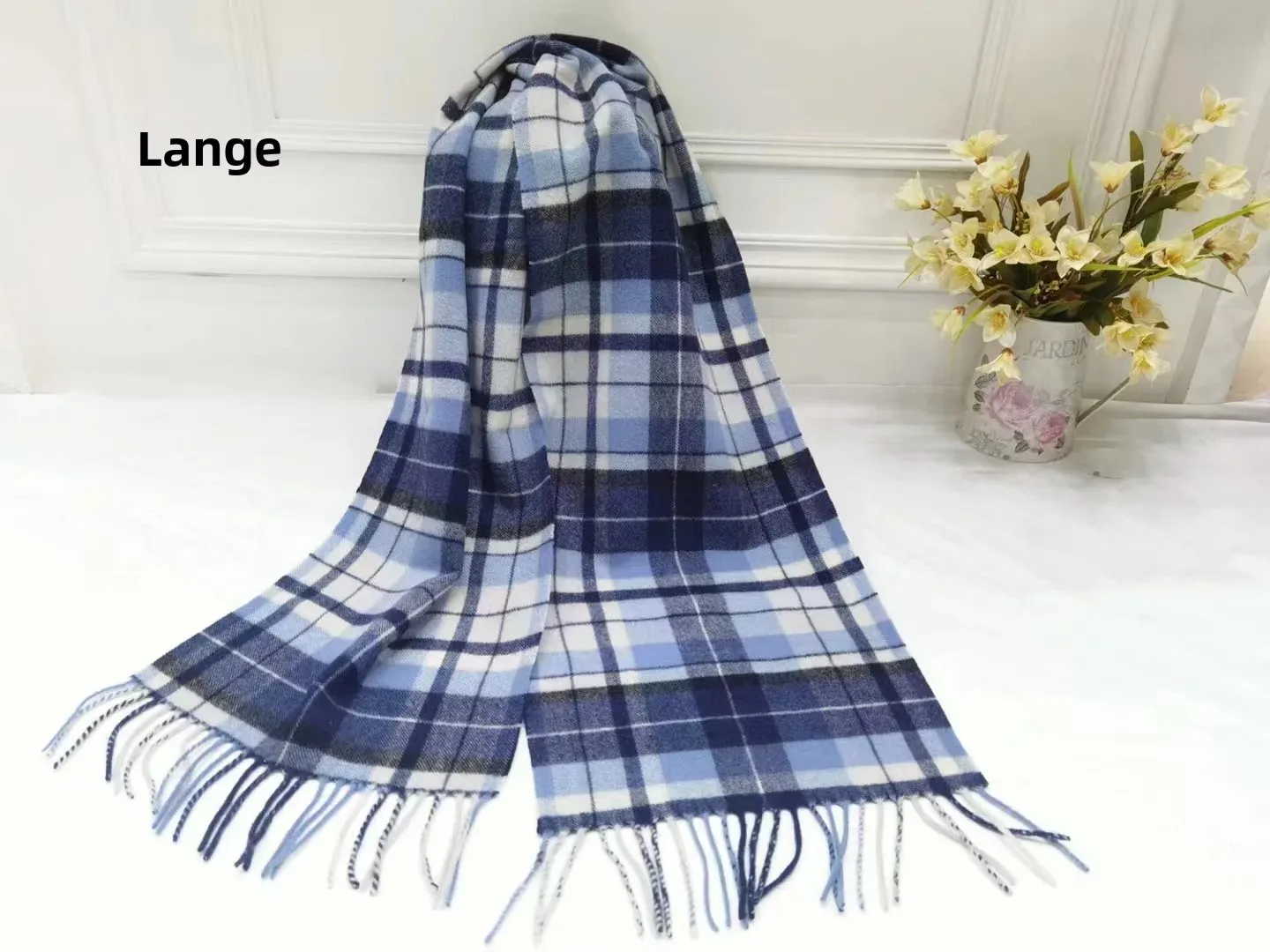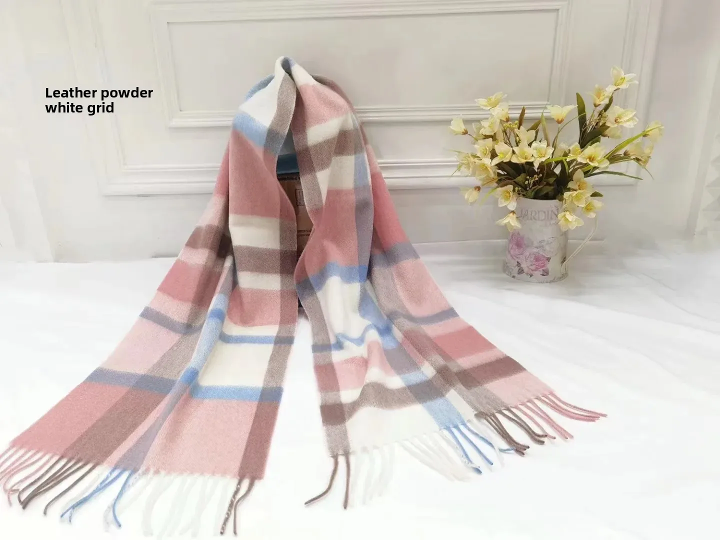 • Classic Plaid Design : The scarf features a timeless plaid design, embodying English fashion and adding a touch of elegance to any outfit.