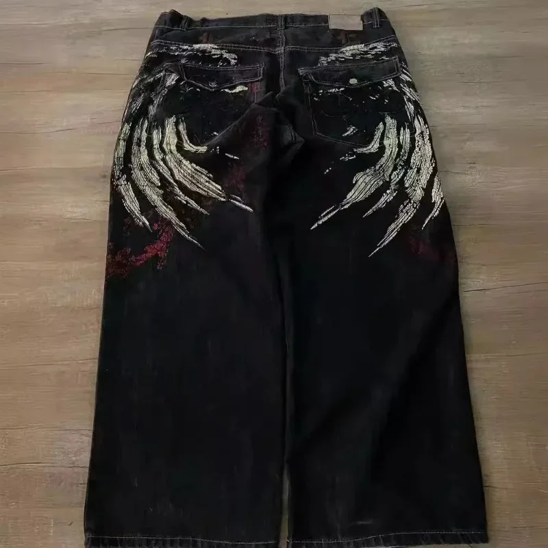 Classic Retro Y2K Loose Letter Denim Pants High Street Casual Punk Style Wide Leg Long Trousers for Men
