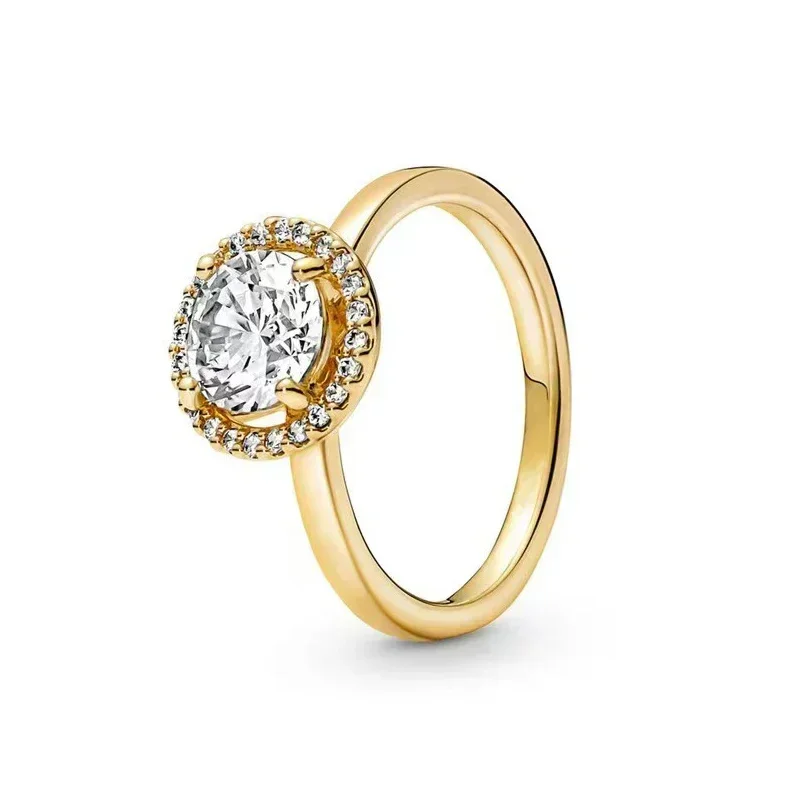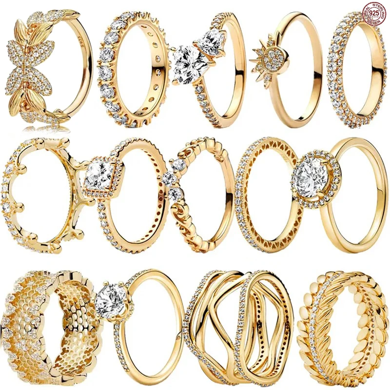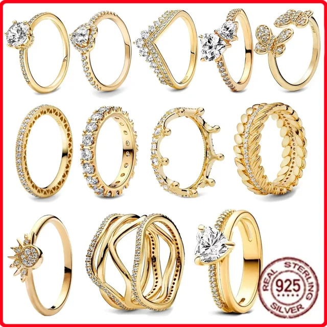 Classic Simple Christmas Birthday Gifts 925 Sterling Silver Gold Color Crown Heart-shaped Ring Exquisite Charm Women's Jewelry
