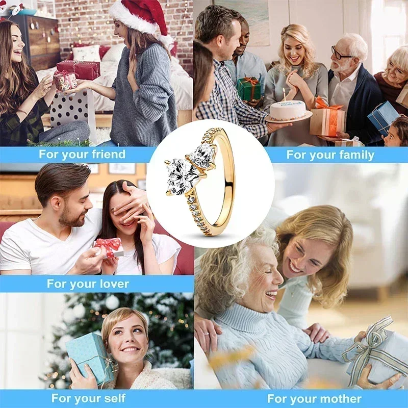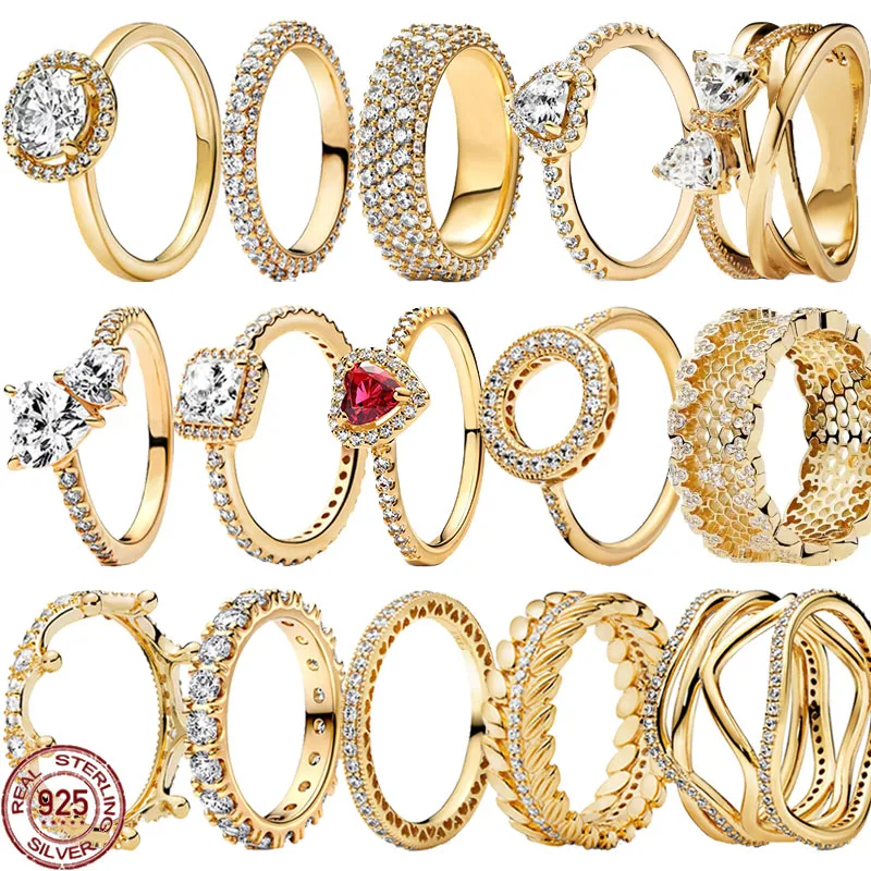 Classic Simple Christmas Birthday Gifts 925 Sterling Silver Gold Color Crown Heart-shaped Ring Exquisite