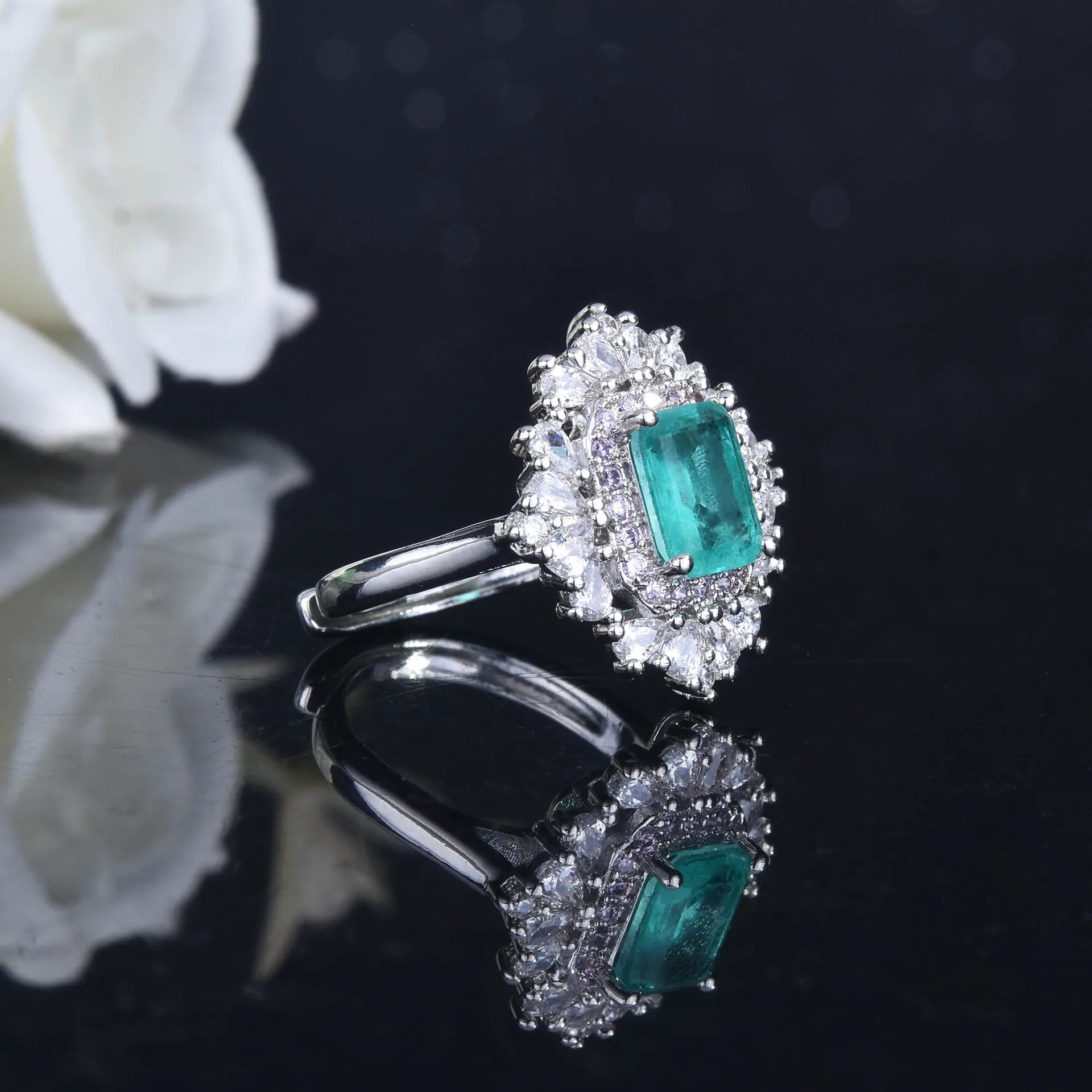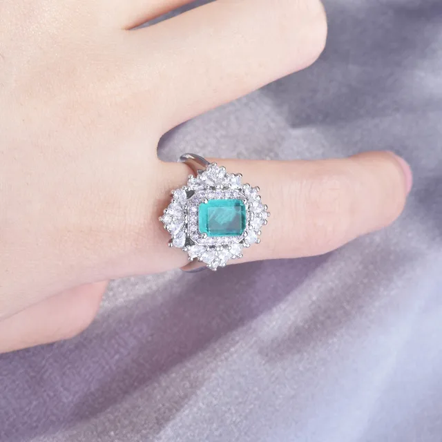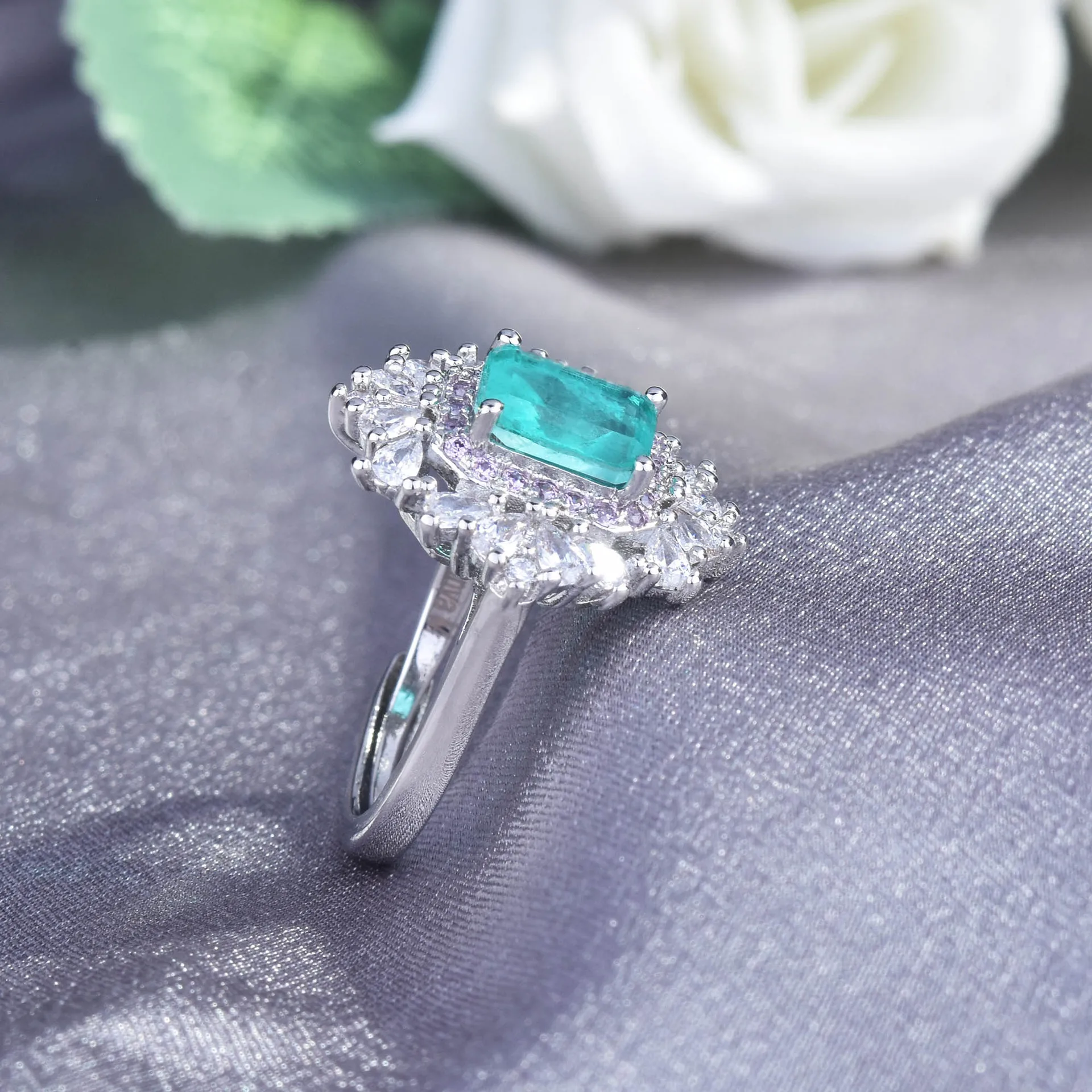 Classic Square Synthetic Paraiba Tourmaline Stone Female Ring Bridal Engagement Jewelry Dainty Costume