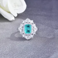 Classic Square Synthetic Paraiba Tourmaline Stone Female Ring Bridal Engagement Jewelry Dainty Costume Accessories Popular Gifts