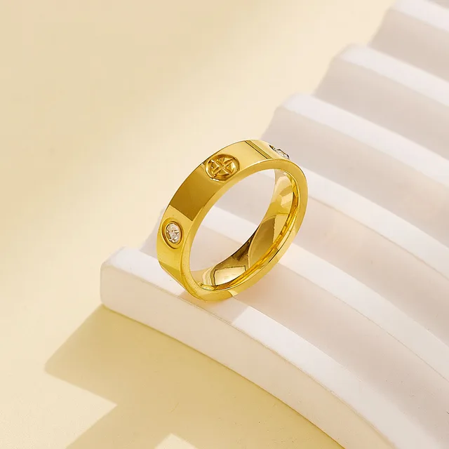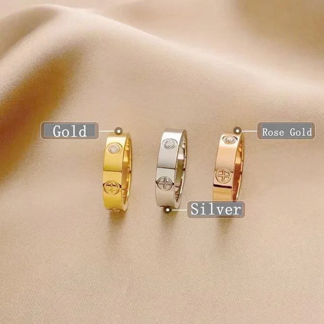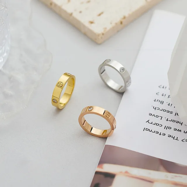 Classic Stainless Steel Cross with Zircon Love Rings for Women Men Couple Finger Ring Luxury Jewelry Wedding Party Gift