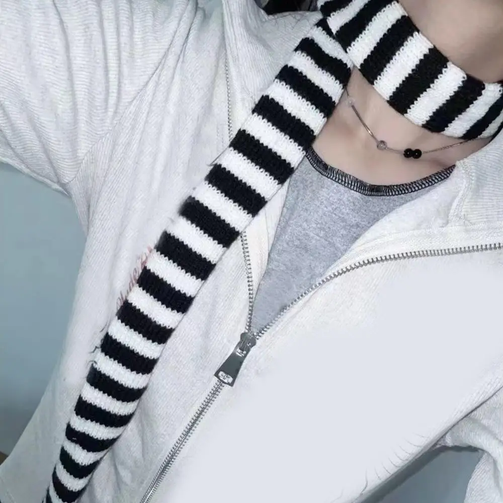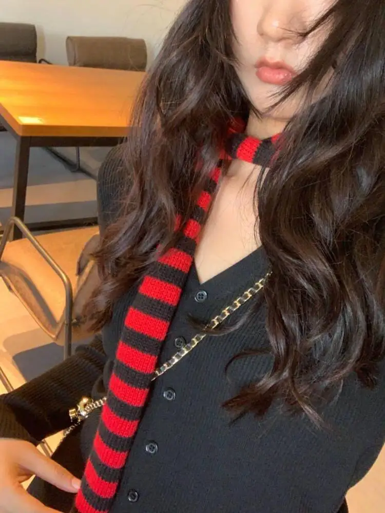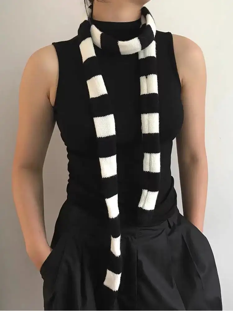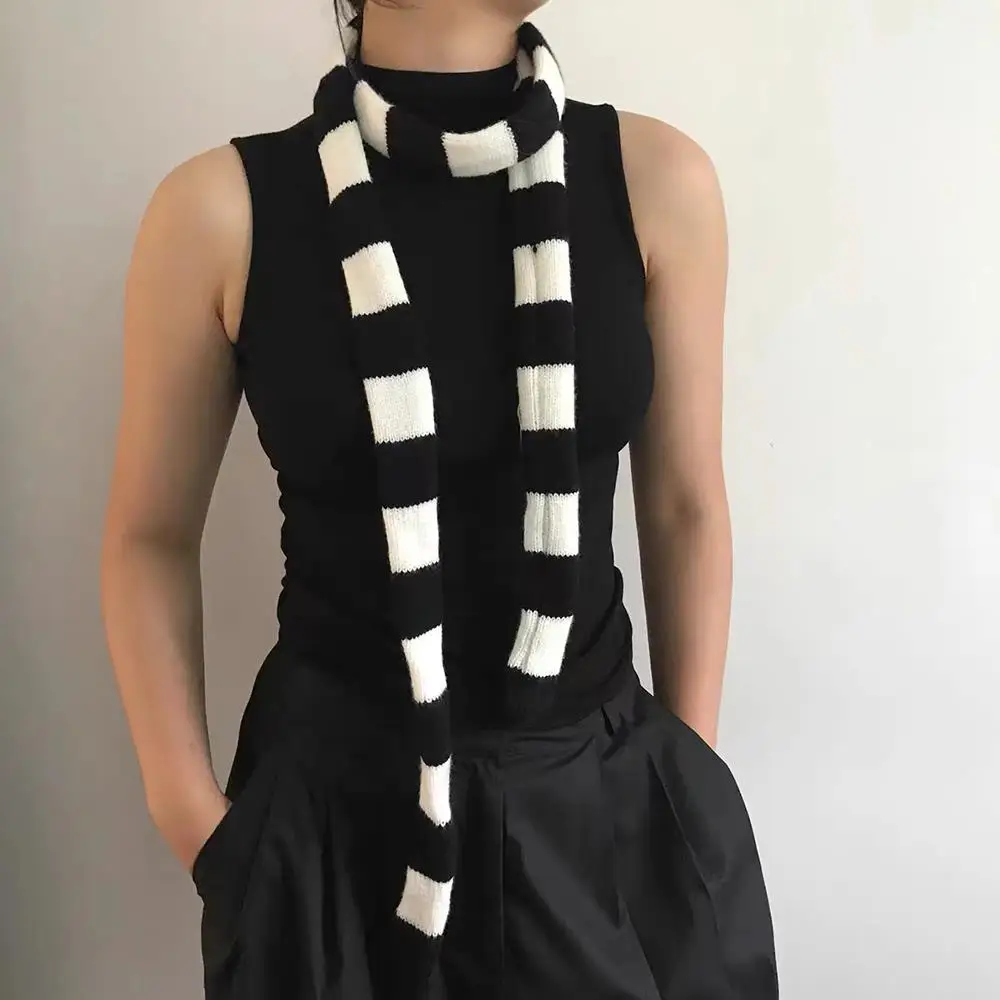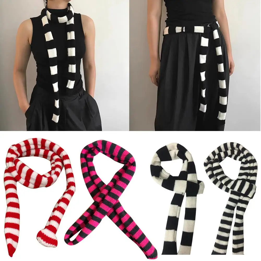 Striped Y2K skinny scarf for women.
