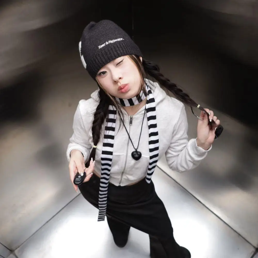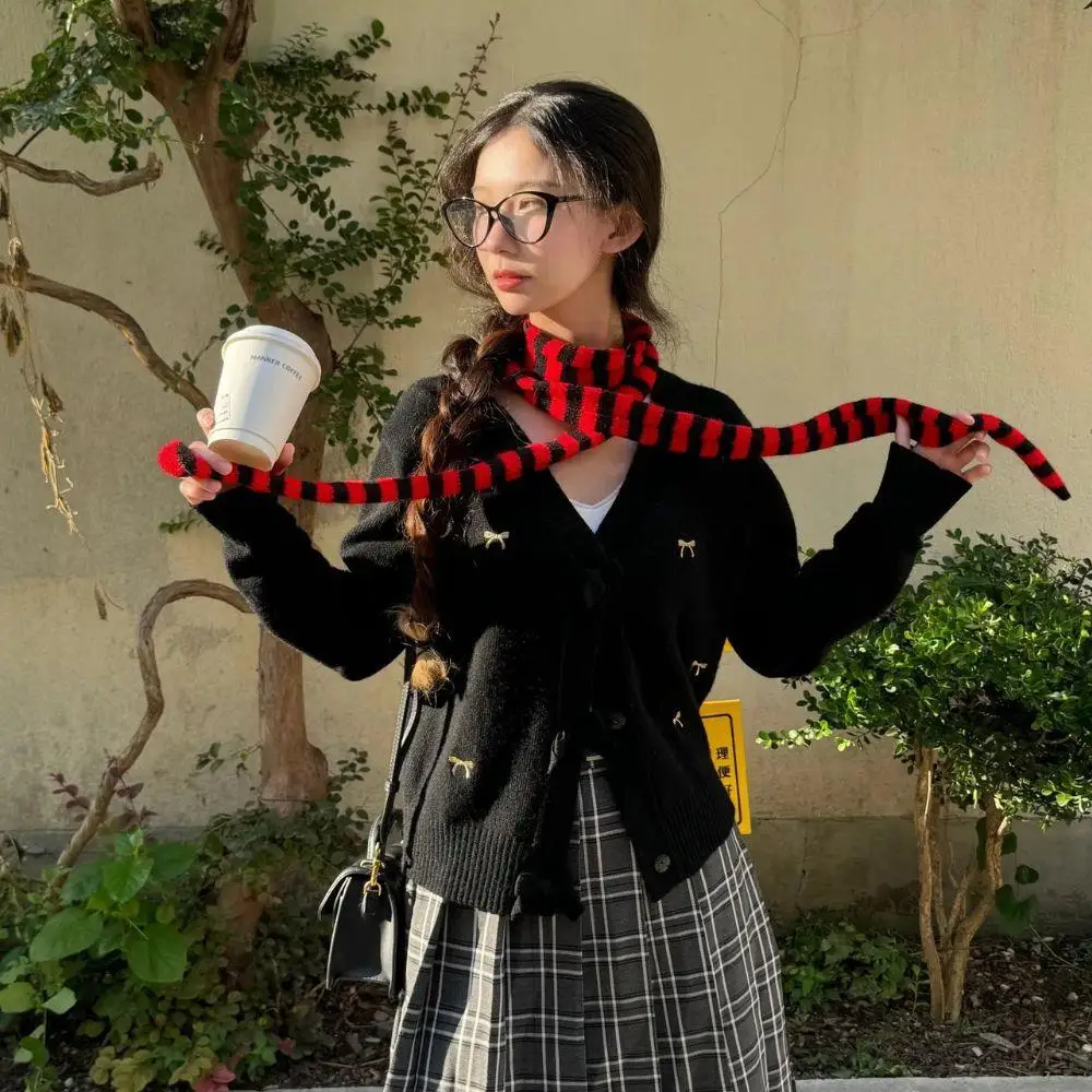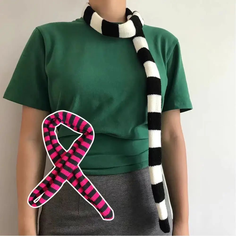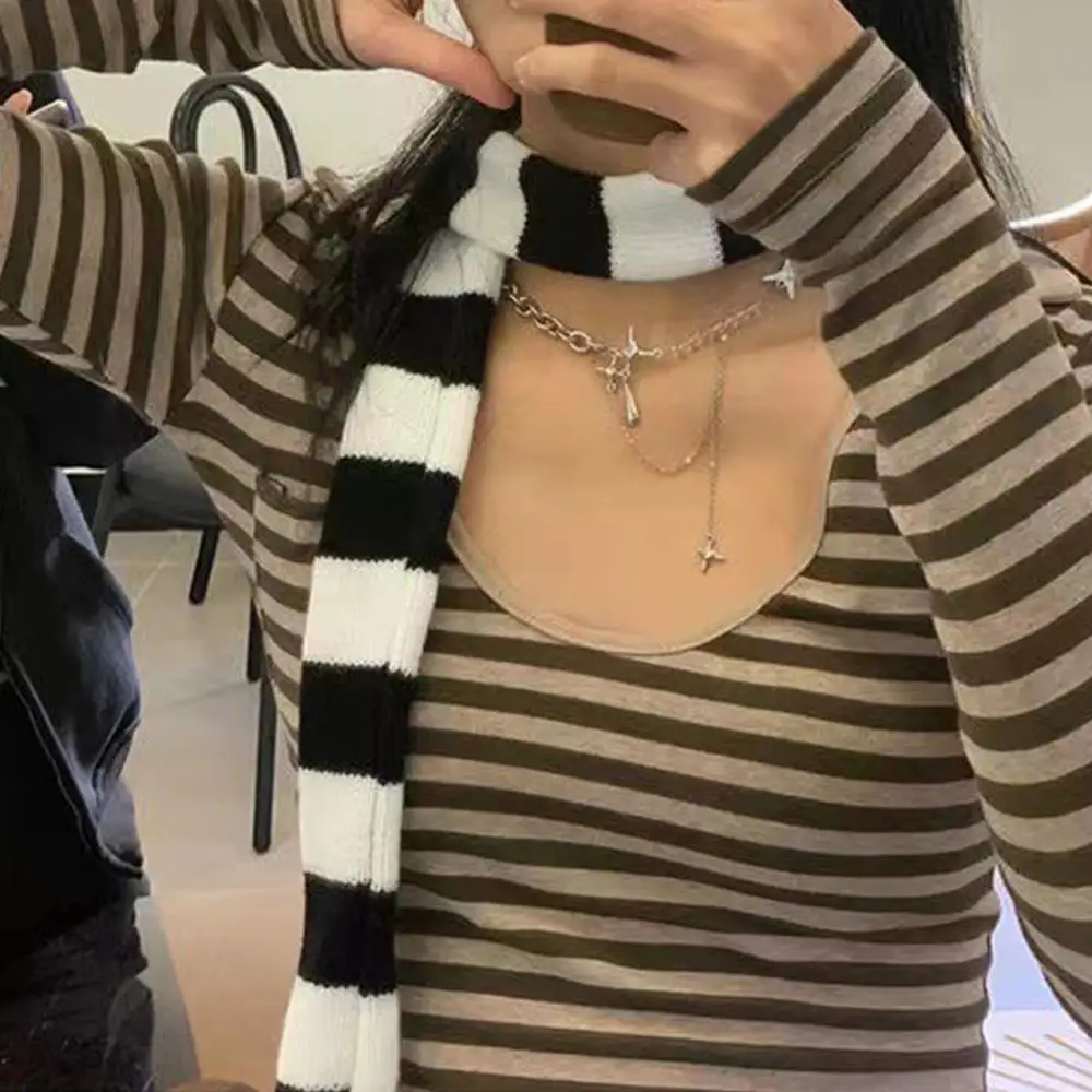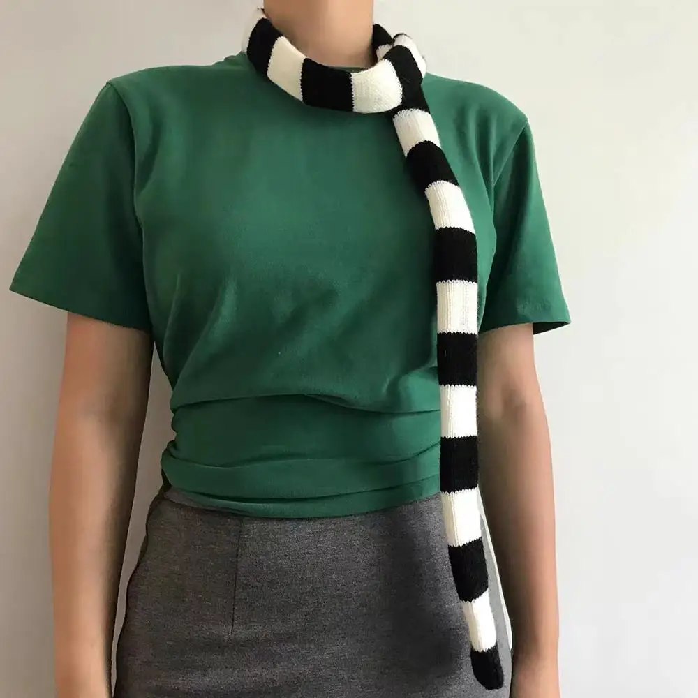 Striped Y2K skinny scarf for women.