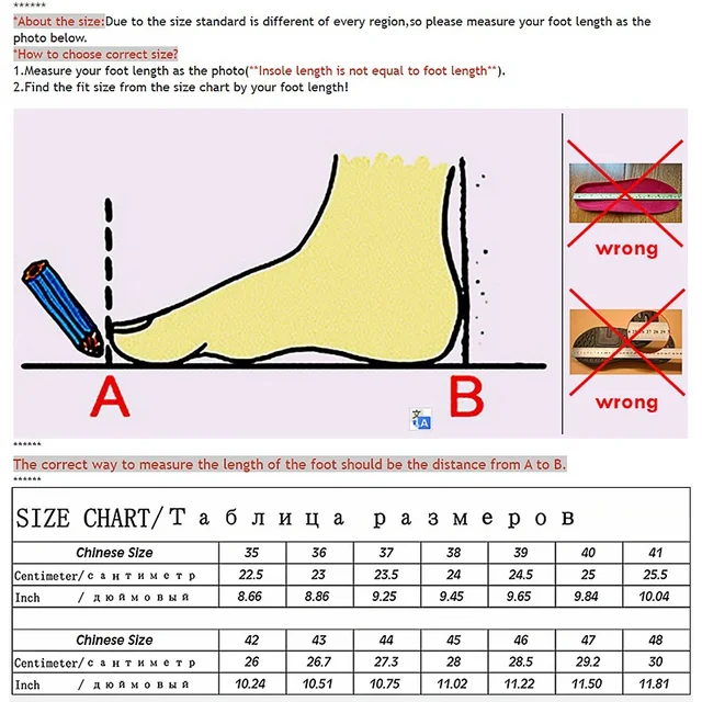 *About the size: Due to the size standard is different of every region,so please measure your foot length as the photo below.