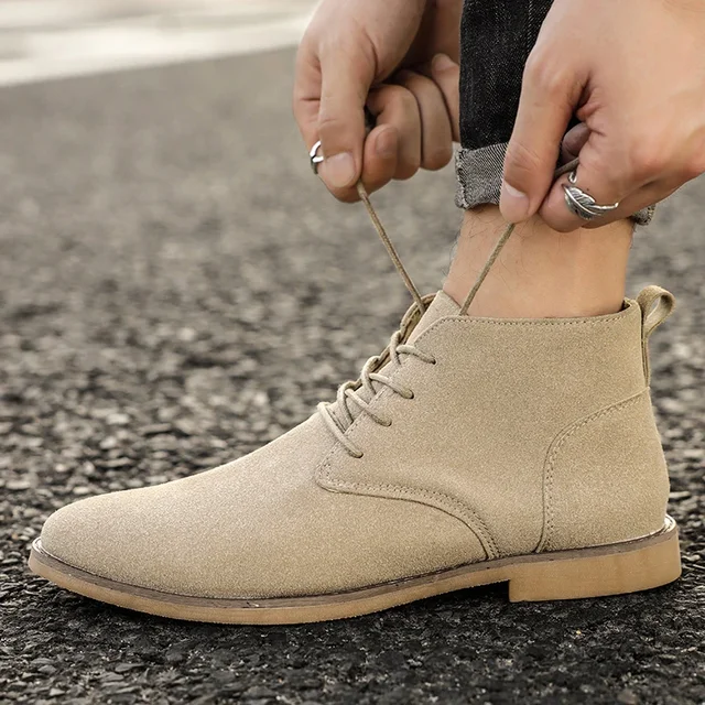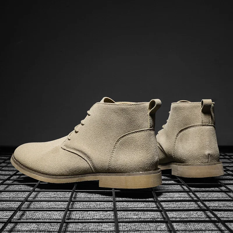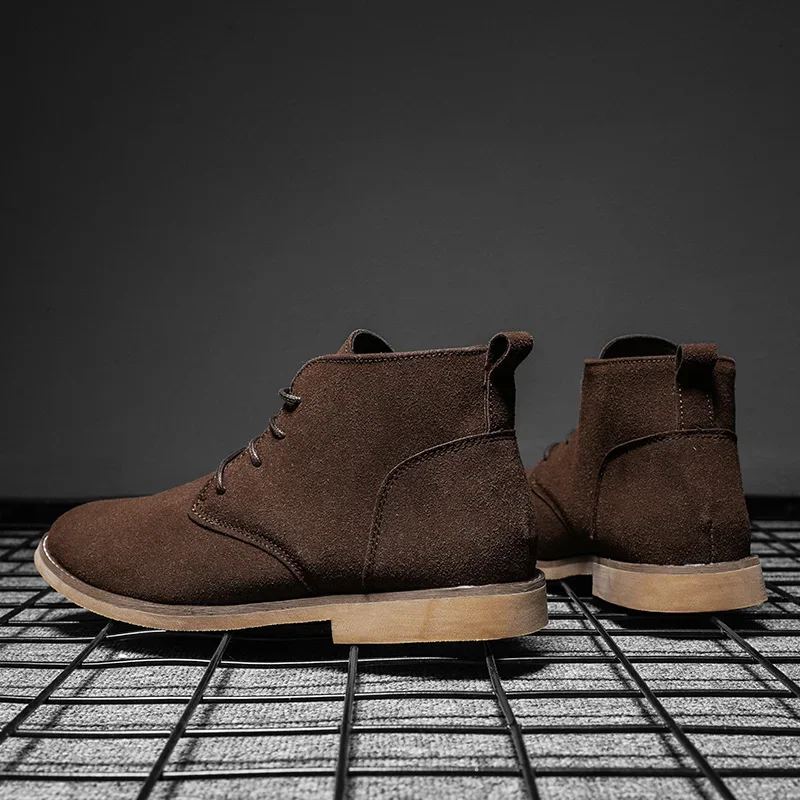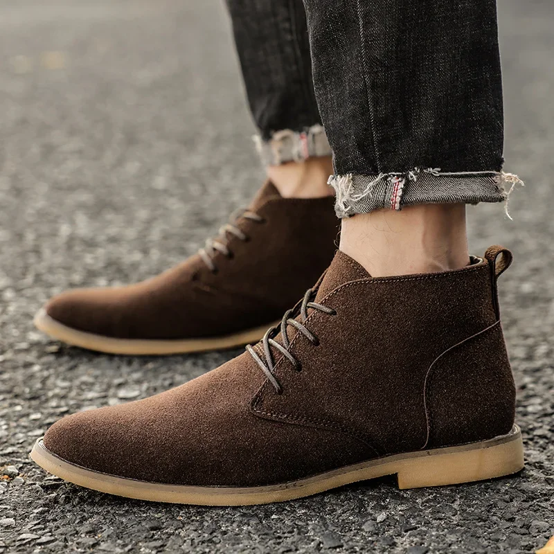 Classic Suede Men Chelsea Boots  Lace Up Ankle Boots Plus Size 38-46 Autumn Footwear For Male Hombres Botas