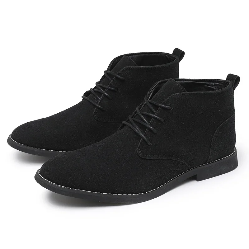 Classic Suede Men Chelsea Boots Lace Up Ankle Boots Plus Size 38-46 Autumn Footwear For Male Hombres Botas