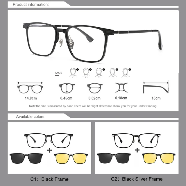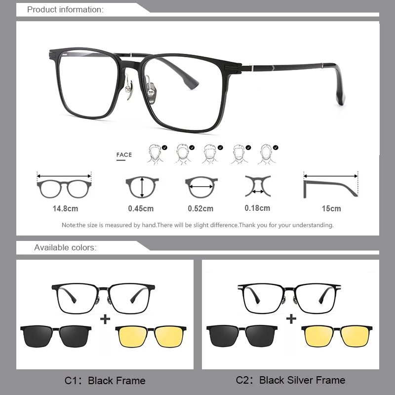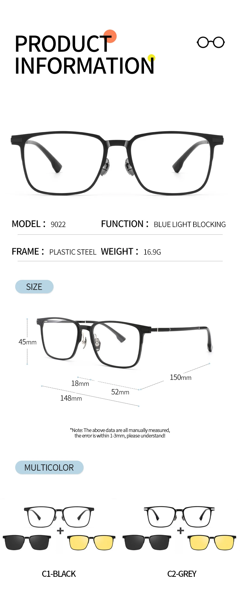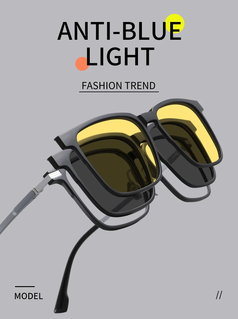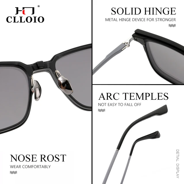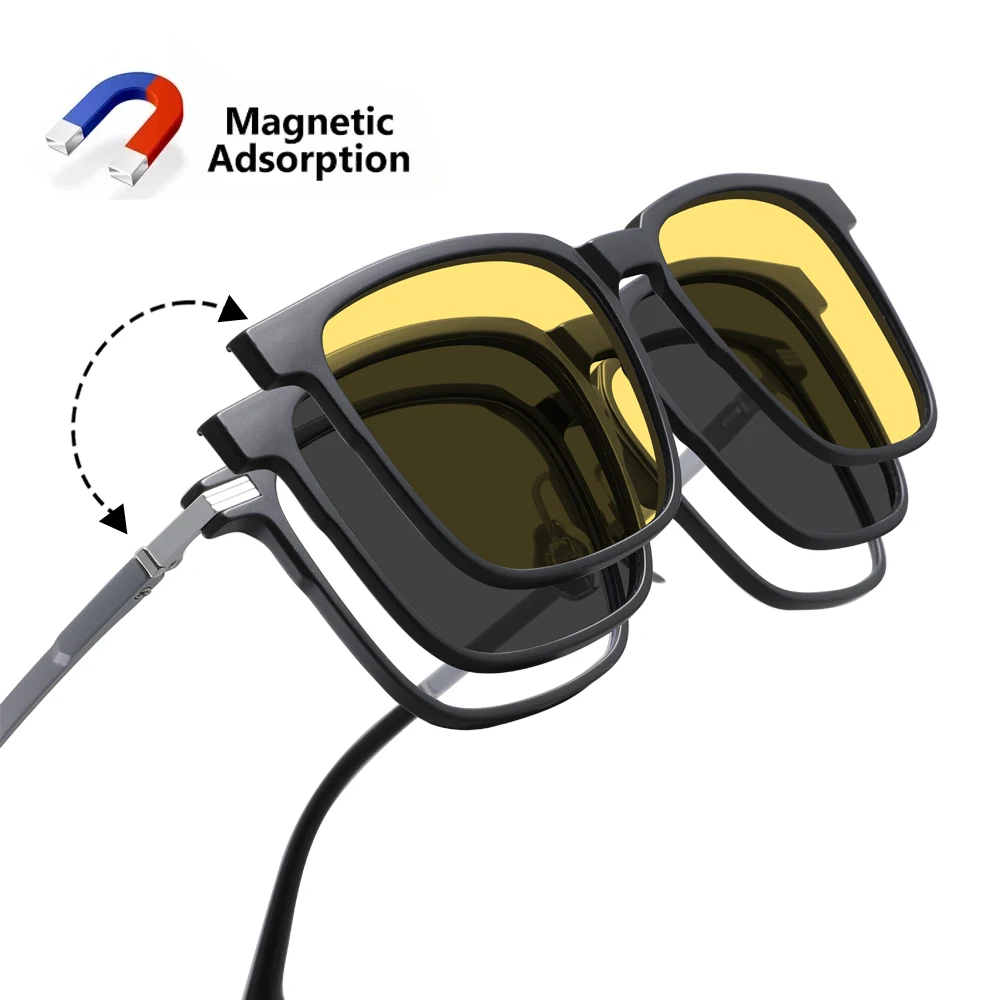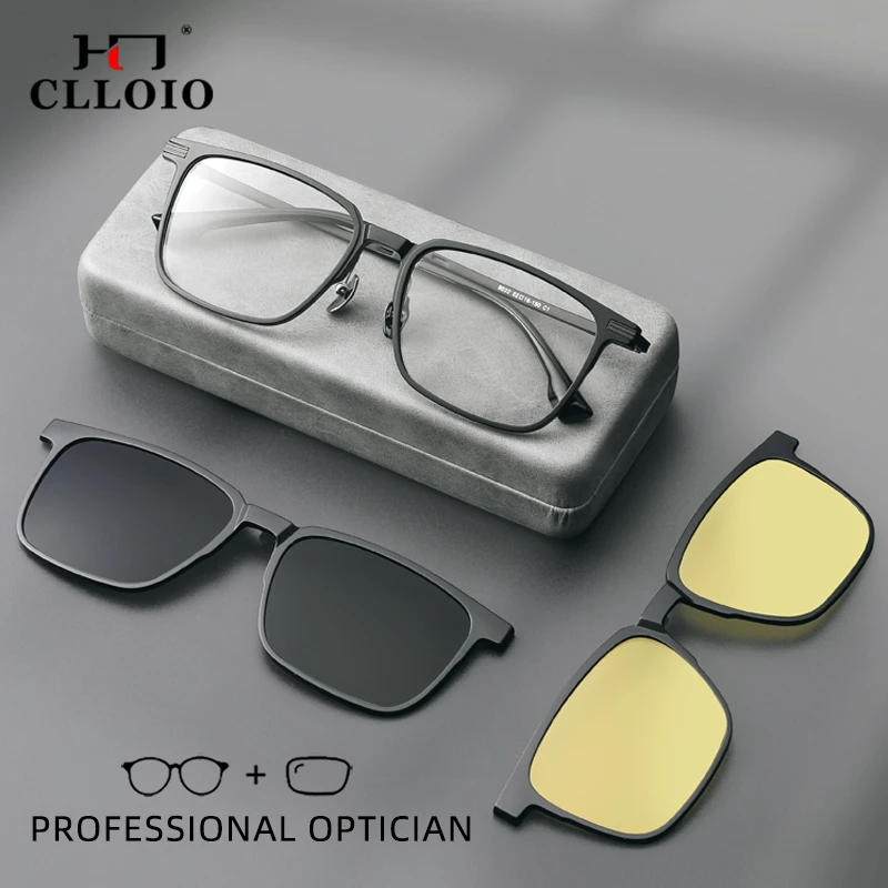 CLLOIO 3 In 1 Men Polarized Optical Magnetic Sunglasses Magnet Clip on Prescription Glasses Anti Blue