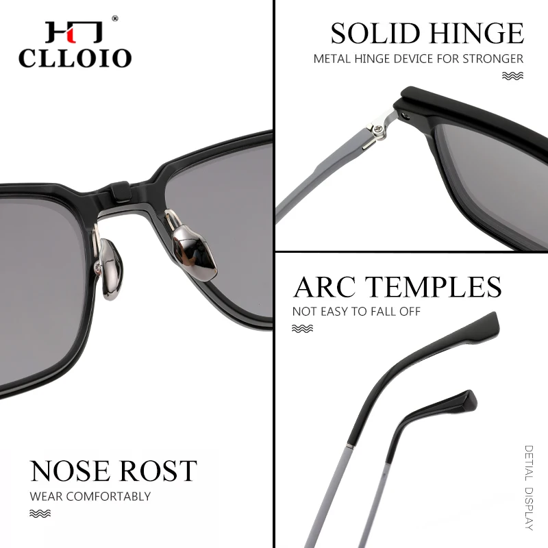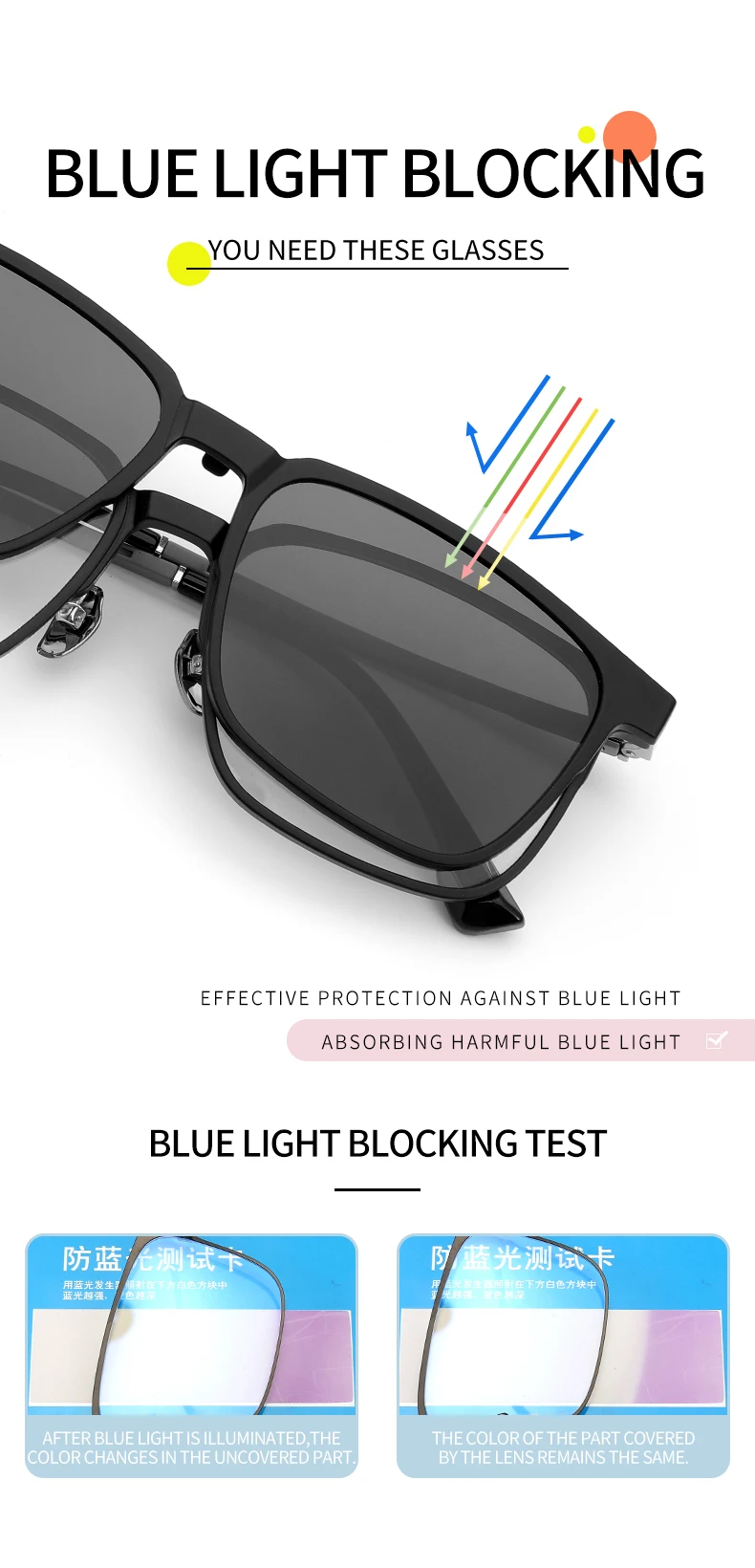 CLLOIO 3 In 1 Men Polarized Optical Magnetic Sunglasses Magnet Clip on Prescription Glasses Anti Blue Ray Myopia Reading Glasses