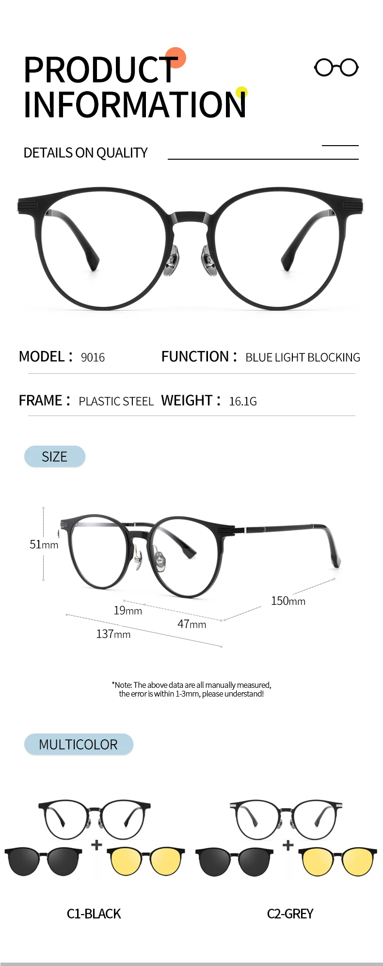 CLLOIO Classic Round Magnet Clip On Prescription Glasses Men Women Myopia Optical Polarized Sunglasses Hyperopia Reading Glasses
