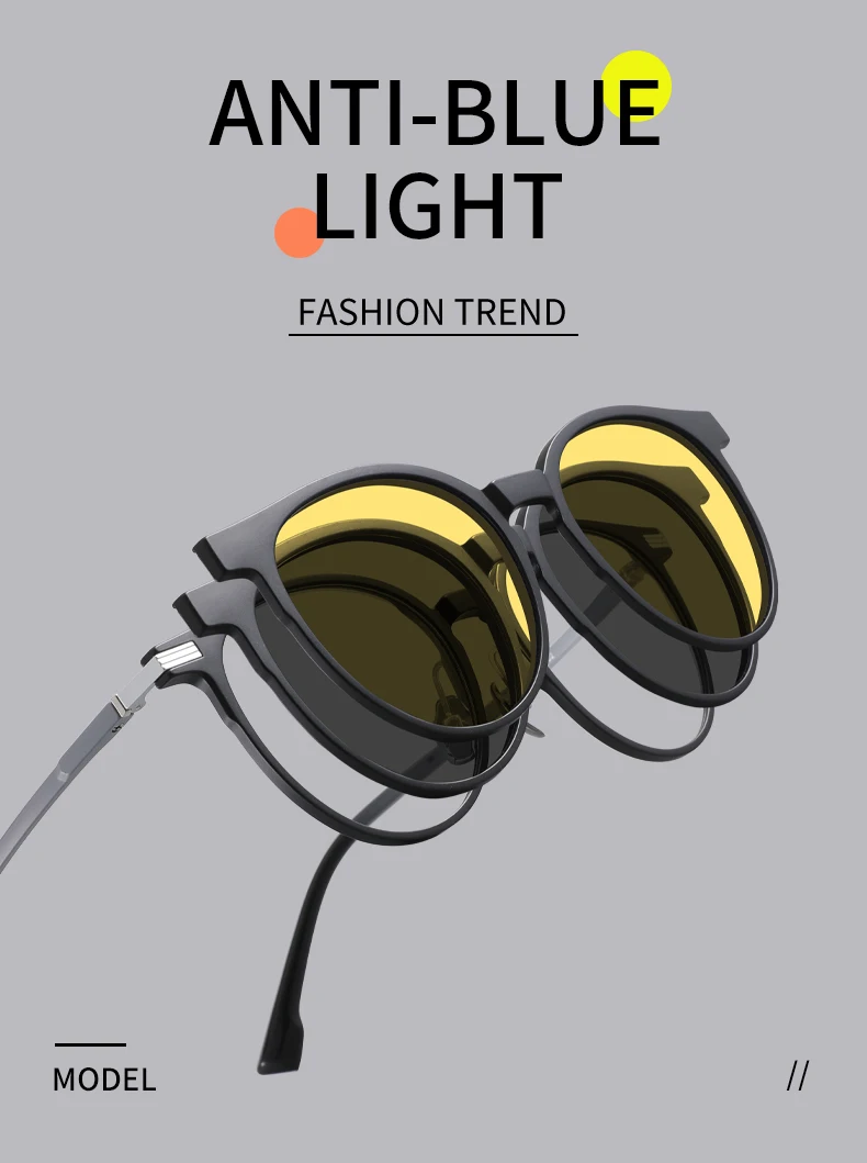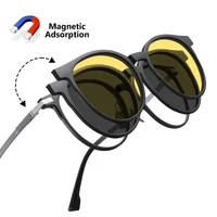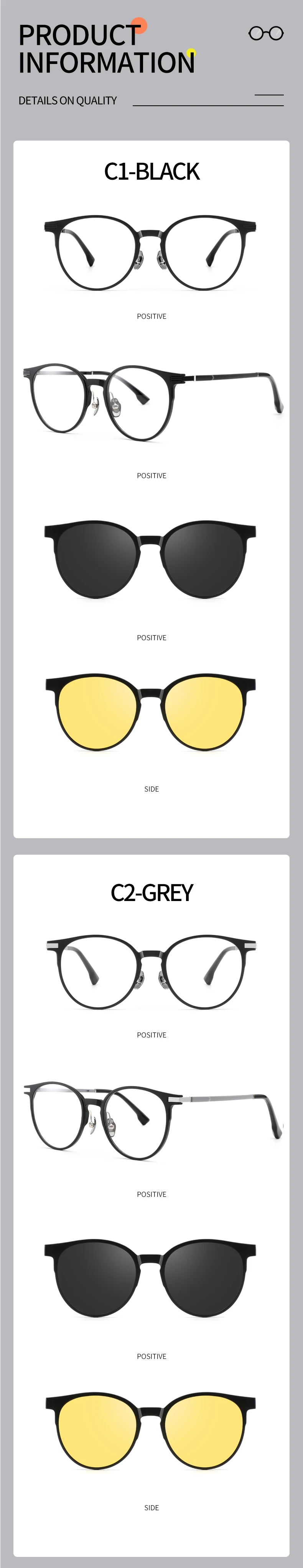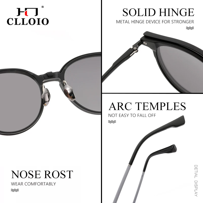 CLLOIO Classic Round Magnet Clip On Prescription Glasses Men Women Myopia Optical Polarized Sunglasses