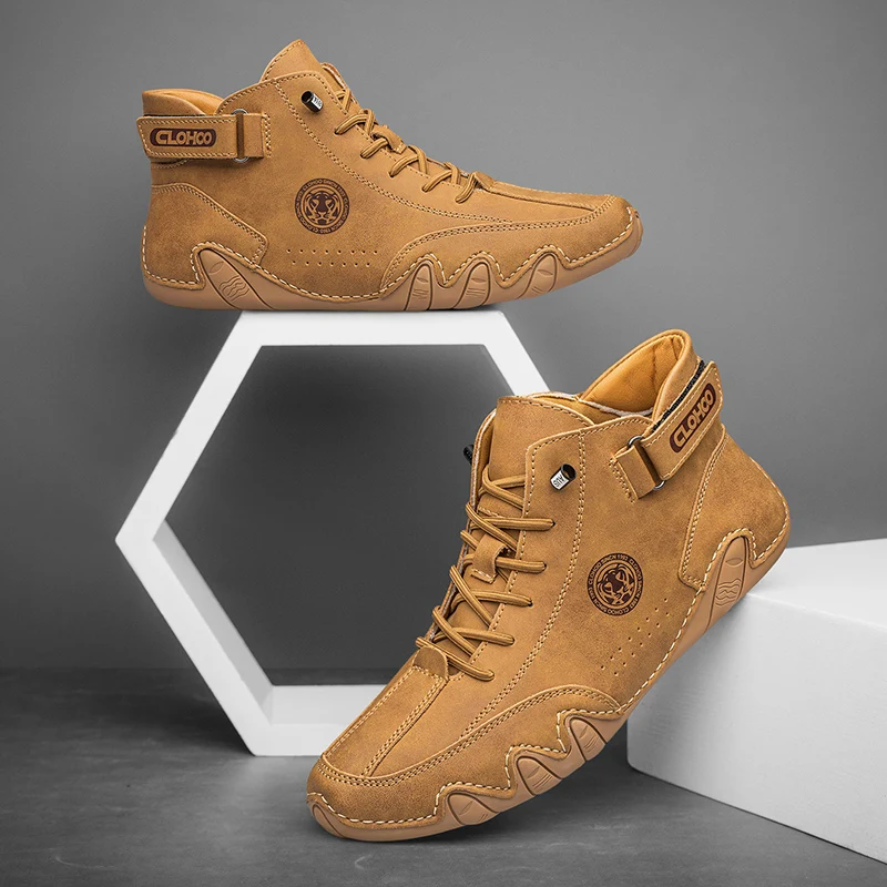 CLOHOO Men Boots Winter Warm Leather Casual Ankle Shoes New Luxury Comfortable Durable Round Toe Boots