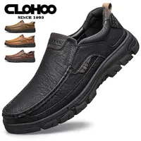 CLOHOOMen’s Casual Loafers Handmade Breathable Leather Shoes with Thick Rubber Sole Comfortable