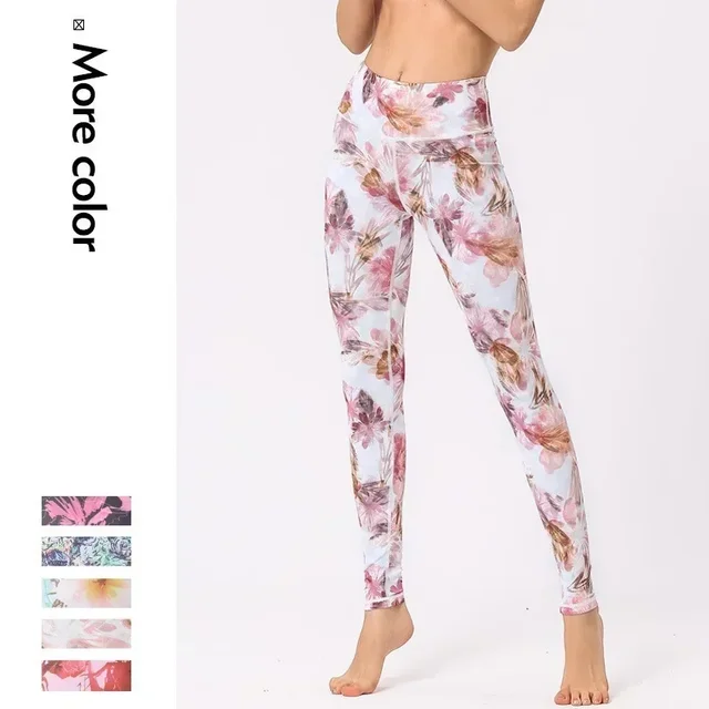 Cloud Hide Yoga Pants Women Flower High Waist Sports Leggings Girl Tights Push Up Trainer Running Trousers Workout Tummy Control