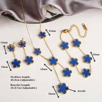 Clover Five Leaf Flower Stainless Steel Bracelet Necklace Earrings Jewelry Set Luxury for Women High Quality Party Jewelry Gift