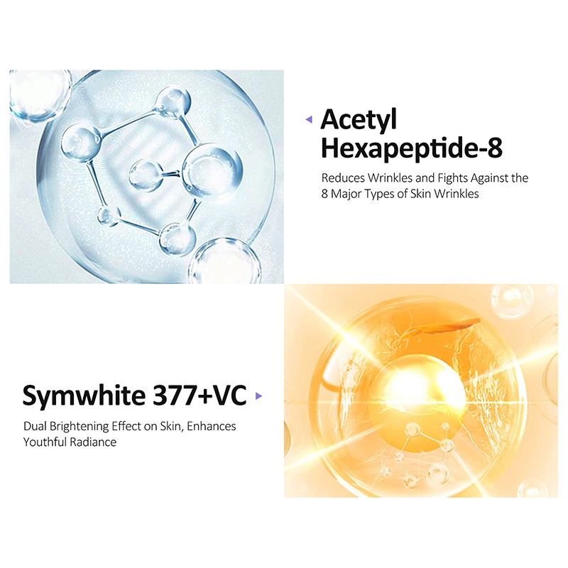 In addition, it is specially added with niacinamide, VC, and 377 triple whitening ingredients to even skin tone, brighten skin, make skin translucent and shiny, and have a bright complexion, showcasing a youthful glow.