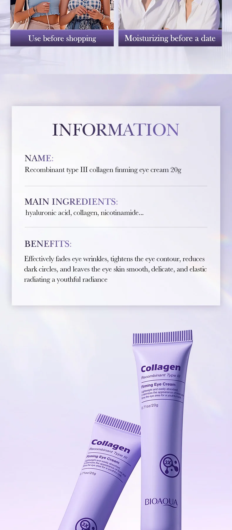 Reduces signs of aging – Helps reduce eye skin concerns such as dark circles,puffiness,fine lines,eye bags,wrinkles and crow’s feet for a youthful and vibrant appearance